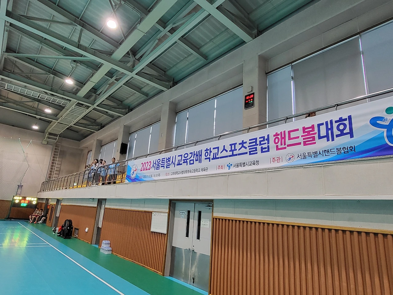 이번 대회는 핸드볼 전문 선수를 양성하는 기관으로 서울시에서 아주 유명한 고대사대부고 체육관에서 열렸다. SK 최태원 회장의 관심과 기대가 많은 곳으로 경기장 곳곳에서 회장님이 기부한 핸드볼 장비들이 눈에 들어왔다. 비인기종목임에도 미래의 핸드볼 꿈나무들이 더 좋은 환경에서 실력을 향상할 수 있도록 노력을 기울인 흔적이 엿보인다. 그 일환에서였을까. 이번 대회 학생들은 모두 대한핸드볼협회의 협찬을 받아 대표팀 유니폼을 기증받아 경기에 임했다. 확실히 팀 조끼를 입고 대회에 출전하는 것에 비해 학생들의 대회에 임하는 태도와 눈빛이 달랐다. 그래서 그런지 경기 전 워밍업 때부터 학생들은 큰 목소리로 파이팅 했다.