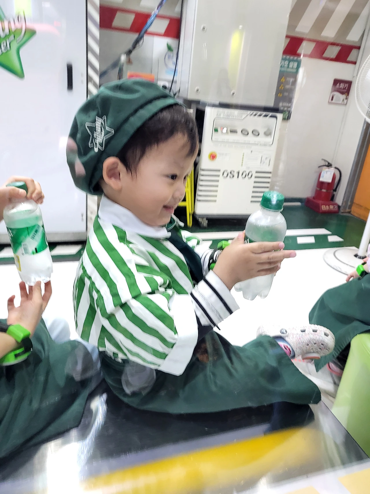 그래서 우선 아들의 최애 음료인 사이다 제조하는 곳을 방문하기로 했다. 대기시간이 30분 정도라 걱정했는데 아들이 대견하게도 기다려준 덕분에 재미있고 즐겁게 체험을 마칠 수 있었다. 자신이 직접 만들고 라벨링 한 사이다를 갖고 퇴장하는 아들의 의기양양한 표정을 보니 절로 흐뭇했다.