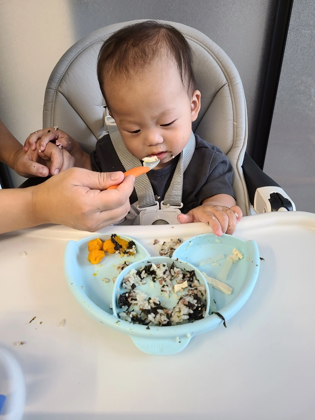 아들이 태어난지 9개월이 접어들면서 부쩍 혼자 힘으로 하고 싶어하는 게 많아졌다. 그 일환으로 이 달부터 자기주도이유식을 시도해보았다. 물론 먹는 것보다 바닥이나 식탁에 흘리거나 날리는(?) 음식이 훨씬 많았다. 그러나 음식을 아기 스스로 탐구하고 오감을 활용해 음식을 섭취할 수 있도록 시간을 넉넉하게 주었다. 아들은 자기주도 이유식 먹기를 꽤나 잘 해주었고 이 과정은 무엇보다 아들의 '내가 할 꺼야'라는 욕구를 충족시켜주었던 소중한 시간이었다. 또한 자기주도이유식을 시작했을 때 부터 분유의 양을 조금씩 줄이기 시작했다. 돌 되기 전까지 단유를 시도하고 싶었고 그게 발달단계 상 시의적절하다는 의견이 옳다고 믿었기 때문이다. 생각보다 분유에 대한 의존도가 높아 쉽지 않았지만 그래도 아들이 조금씩 먹는 분유의 양을 줄일 수 있었다.