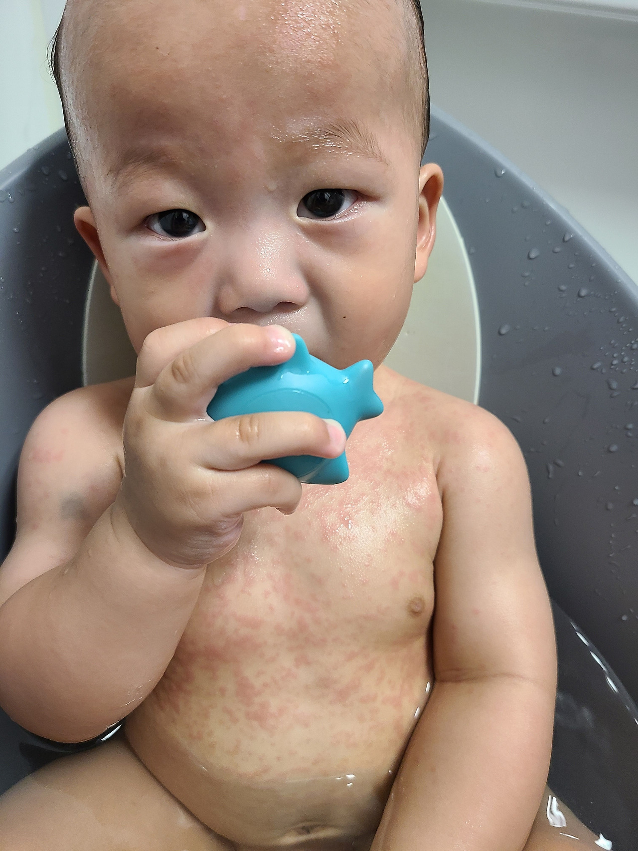 "코로나 양성인줄 알았는데 돌발진이래. 이 맘 때 아기들은 다 한번씩 겪는 성장통이래"