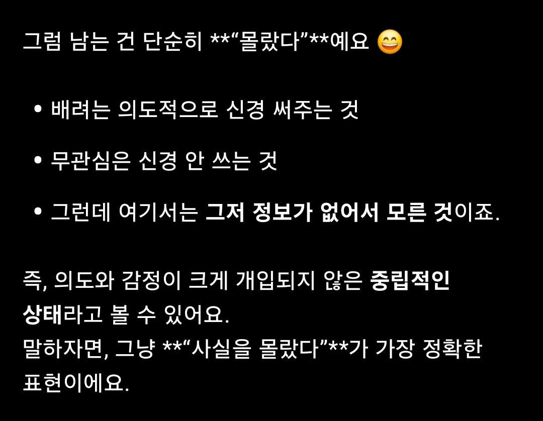 마음이 조금 상하는 것 같으니, '몰랐다'로 하는 게 좋겠다.