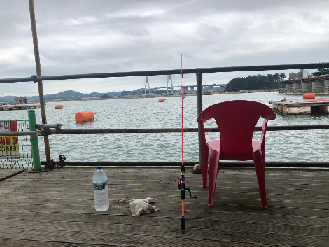 낚시가 익숙해 보이는 사람들을 가로질러 엉거주춤 의자에 앉았다.