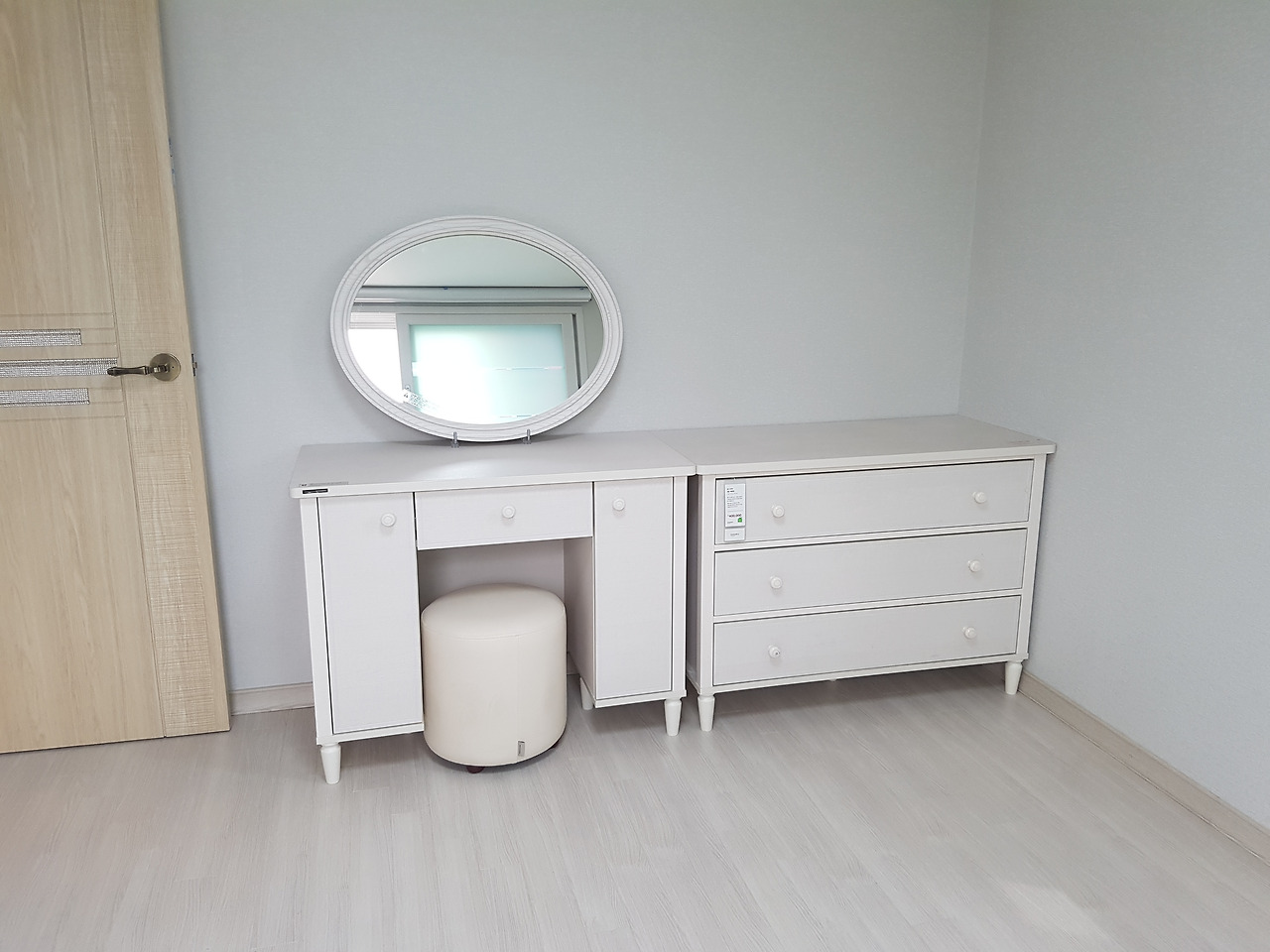 "이왕 살 거 눈치 보지 말고 편하게 매매해서 살아요. 여긴 입지도 좋아서 갖고 있으면 나쁠 것도 없어요. 오늘 바로 계약하면 매매가를 전세가랑 똑같이 맞춰줄게요. 필요하면 여기 분양 사무소에 있는 한샘 화장대도 새건데 가져가요."