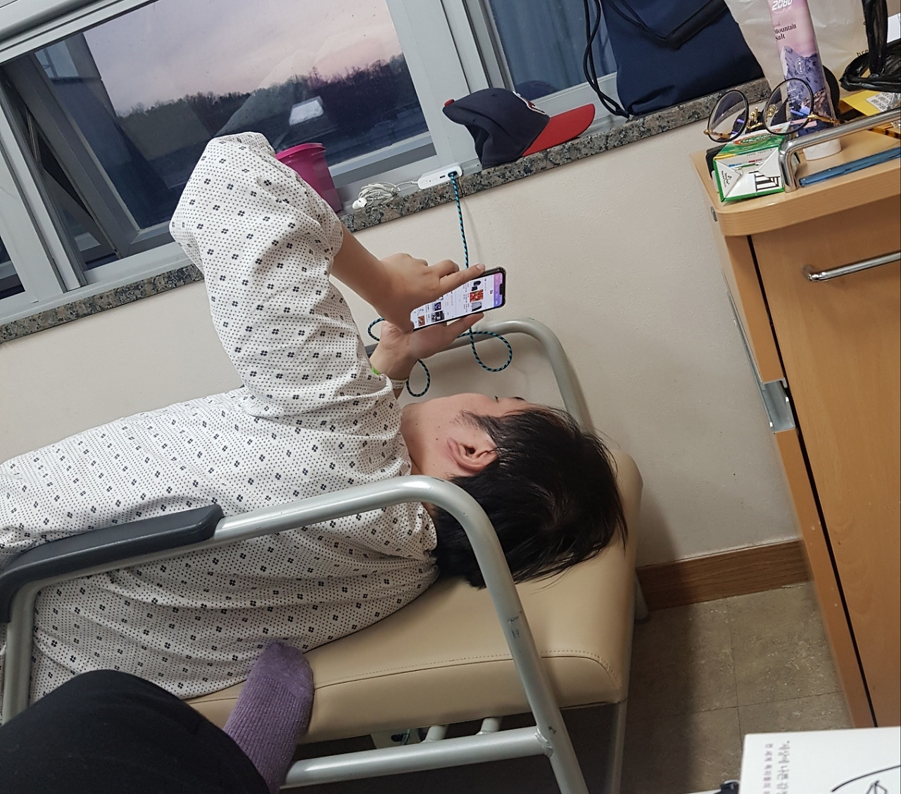 나는 남편이 회사에서 2년마다 받는 건강검진 정도는 받는 줄 알고 있었지만 남편은 한 번도 받아본 적이 없었다. 이 자리에서 우리 둘 다 당뇨에 대해 처음 알게 되었다. 그렇게 안과에서 당뇨를 진단받았다. 머리가 복잡한 와중에 남편이 병원복으로 갈아입고 나왔다. 아침까지 멀쩡하던 사람이 간이침대에 누워 수술실로 들어갔다. 그렇게 시술을 받고 당일퇴원을 했다. 남편은 앞이 잘 안 보였고 내 도움 없이는 엘리베이터 버튼을 누르는 것조차 어려웠다.