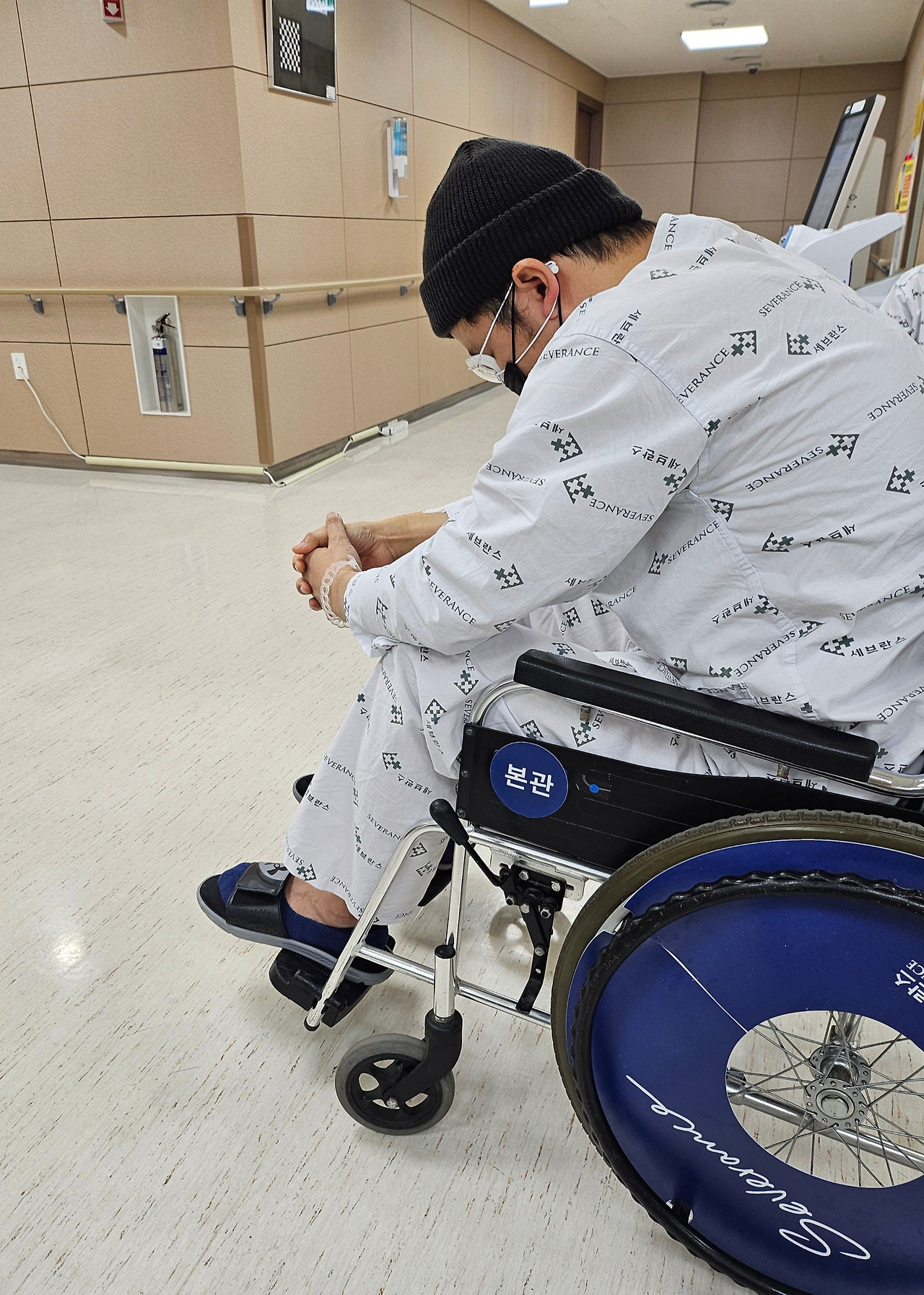 남편을 사복으로 갈아입히긴 했는데 그다음부터가 문제였다. 각 병동마다 배정된 휠체어가 따로 있다고 해서 어린이병동의 휠체어를 빌리지 못했다. 다른 방법을 찾는 것도 도와줄 사람이 없으니 막막했다. 퇴원을 하는 순간부터 우리는 치료가 끝난 환자로 분류가 되어있었다. 일단 느려도 안전하게 차까지 가는 게 목표였다. 걷기도 하고 안대도 한쪽 눈에만 차고 있다 보니 얼핏 보기에 남편은 멀쩡해보였다.