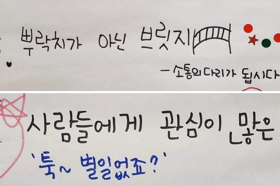 두 번째 문장은 익숙한데 뭉클하더라. 최근 우리 가족에게 좀 힘든 일이 있었는데, 워크숍 점심시간에 생각지도 못한 분께 연락을 받았다. 걱정돼서 전화했고 기도하고 있다는 말씀에 마음이 따뜻해졌다. 최근 우리에게 관심을 가지고 소소하게라도 연락 주시는 분들이 참 고맙더라.