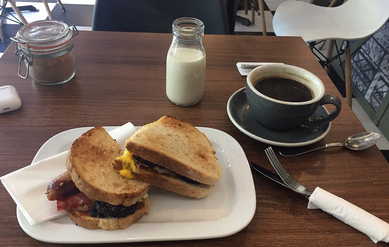 2. 일요일 낮 브런치가 너무 먹고 싶어 동네 근처를 죄다 검색해 봤는데, 40분 이상 줄을 서야 하거나 이미 문을 닫았거나 해서 '아 오늘은 글렀다' 싶어 공원에 멍하니 앉아 있다 급 집 근처에 새로 생긴 지 얼마 되지 않은 카페가 있었던 것이 퍼뜩 떠올라 그곳으로 출발했다. A Table이라는 이름의 카페인데, 도착하니 다행히도 문을 닫기 직전이었다. 바로 브런치 주문! 이스턴 홀리데이 연휴 한정 'Easter Bun'을 시키고 아메리카노도 하나 시켰다. 웬걸, 너무 맛있잖아. 심지어 같이 주는 우유도 너무 고소했다. 언니들도 스타일리쉬하고. 갑자기 기분이 좋아져 룰루랄라해졌었던 기억.