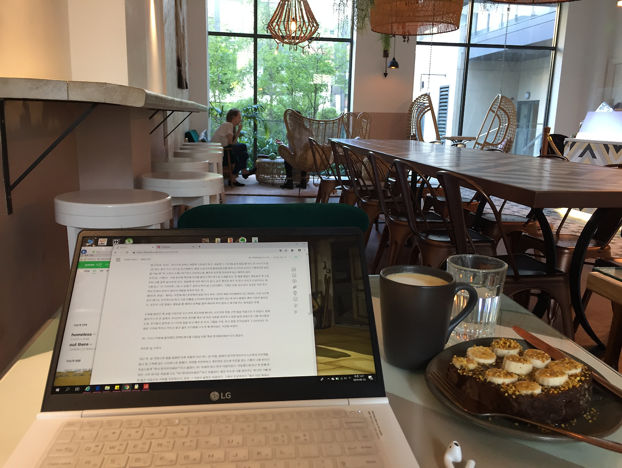 스타벅스는 주문하는 사람 취향대로 음료를 커스텀(custom)할 수 있다는 곳이었다는 사실을 왜 나는 진작에 모르고 있었을까. 온갖 코드들로 범벅이 된 컵을 처음 받아들였을 때는 그야말로 멘붕, 이게 뭔가 싶었다. 가령 틸(till)에 있는 직원이 음료 주문을 받고 건네준 컵에 간단하게 라떼(L)나 카푸치노(C), 플랫화이트(FW)만 적혀 있으면 그에 해당하는 기호만 보고 음료를 만들면 되니까 그나마 다행인데, 예를 들어 컵에 "G/X/4/A/WET/X-HOT/-/M"라고 적혀 있으면 나는 이 기호들만 보고 이 주문이 "그란데 디카페인 포샷 아몬드우유 웨트 엑스트라핫 노휩 모카"라고 순식간에 알아채서 빠릿하게 커피를 만들어내야하는 것이었다. (정말로 이렇게 주문하는 사람이 있다ㅠㅠ) 처음 며칠은 이런 주문들이 들어오면 한참동안 컵을 들여다보며 머리를 굴리기 바빠 이후 주문들도 싹 밀리고 그랬는데, 많은 스탭들이 그때마다 도와주고 가르쳐줘서 지금은 그나마 그 간극이 조금씩 줄어들고 있는 것 같다. (그래도 아직까지 당황해한다.) 그리고 주문이 밀릴 때에는 멀티로 여러 음료를 한꺼번에 빠른 시간 내에 만들어야 하니 자질구레한 실수가 차고 넘쳤다. 샷이 덜 들어가거나 음료 양을 못 맞춰 넘치거나 하는. 그러나 아침 일찍부터 저어기 현관문까지 늘어서 있는 줄들을 마주하고 나니 나는 해내야될 수밖에 없었다. 그래도 여태껏 음료가 왜 이리 늦니, 커피 맛이 왜 이러니라고 했던 손님은 없어서 천만다행이었다. 그리고 그렇게 만들어 낸(?) 커피를 내밀며 그들의 이름을 불렀을 때 대부분 웃으면서 커피를 받아주니 그냥 그 자체로도 감사하고 그랬다.