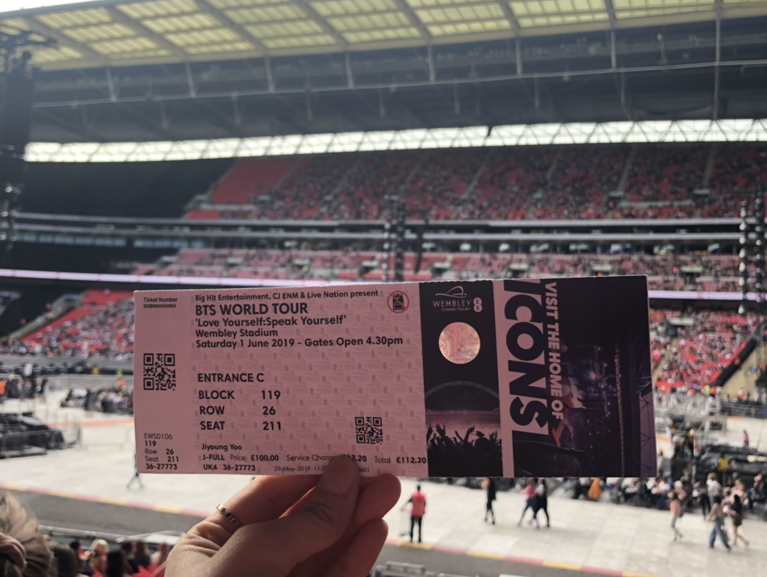 비영어권 가수 최초로 BTS가 영국의 웸블리 스타디움(Wembley Stadium)에서 단독 콘서트 'Love Yourself ~Speak Yourself~'를 펼치게 되었다는 기사. 웸블리 스타디움이라면 한국 사람들에게는 영화 '보헤미안 랩소디'의 마지막 장면인 라이브 에이드가 진행되었던 장소로 익숙한 곳이며, 한 시대를 풍미한 가수들만이 설 수 있다는 '지구에서 가장 큰 규모의 스타디움이자 역사적인 공연장'으로 알려져 있는 곳이지 않은가. 이전까지 BTS를 전혀 몰랐던 나로서도 이들이 본격적으로 해외 시상식에서 각종 상을 휩쓸고 빌보드에서 1위를 한다는 소식이 들리던 2018년부터 이들의 행보를 자연스럽게 접하게 되었고 어느새 나 역시 음악을 즐겨듣게되는 한 사람이 되어 있었다. 그렇다고 무작정 콘서트를 보러 가야지, 팬클럽에 가입해야지라는 생각까지는 하지 않았던 것이 사실이다. 그런데 이 웸블리 입성 소식은 그것과는 또 다른 이야기였다. 다른 걸 다 제쳐두고 한국 가수가 한국어로 웸블리 스타디움에서 콘서트를 하게 된다니 그 말도 안되는 광경을 지켜보는 것을 상상하는 것만으로도 이미 소름이 돋을 것 같았다. 어차피 그때쯤이면 더블린에 잘 정착해있으리라는 생각과 런던과 더블린은 비행기로 30분 거리에 왕복 4~5만원정도의 저렴한 가격으로 충분히 다녀올 수 있었기 때문에 공연 티켓을 한 번 예매해 보자고 다짐했고, 수십만 명과의 경쟁률을 뚫고 나는 90분만에 전석이 매진된 그 공연의 티켓을 당당하게 얻어낼 수 있었다.