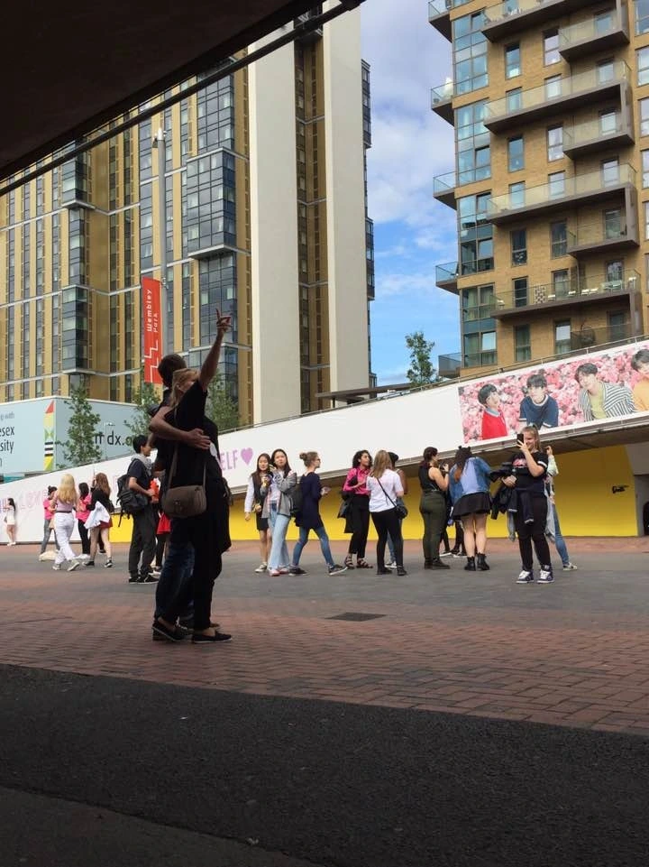140번 버스를 타고 메트로폴리탄 튜브라인 쪽으로 50분 정도 가던 중 내 옆자리에 오랫동안 앉아있던 아시안 계열의 여자아이가 말을 걸어왔다. 핸드폰을 보여주면서 자기가 가고 있는 방향이 맞냐고 물어보길래 살펴보니 이 친구도 경기장으로 향하고 있는 친구였고 나도 여기로 향하고 있으니 같이 가면 되겠다고 얘기해 주었다. 그러더니 환하게 웃으며 잘되었다고 하며 붙임성있게 말을 걸어왔다. 홍콩에서 온 이 친구는 지금 맨체스터에서 2년 정도 여동생과 함께 지내고 있는데 이번에 런던에 BTS가 오게 되어 처음으로 콘서트를 가게 되었다고. 이미 표정에서부터 들뜸과 긴장이 고스란히 나에게 전해졌다. 그렇게 버스에서 그리고 튜브에서 얘기를 나누며 우리는 경기장에 무사히 도착할 수 있었다.
