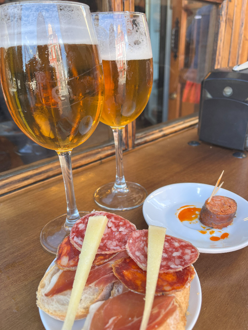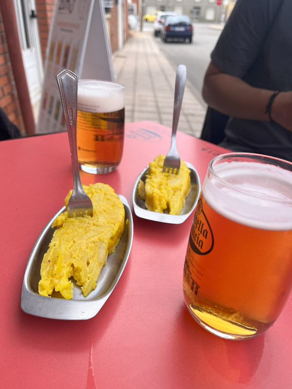 점심을 먹고 온 경우라면 다행이지만, 점심을 굶고 걸은 경우라면 서둘러야 한다. 스페인의 시에스타(Siesta) 시간, 오후 2시가 넘으면 식당에서 점심을 먹을 수 없다. 그럴 땐 바(Bar)에서 맥주 한 잔과 핀초(Pincho; 조그만 빵 조각 위에 한 가지 재료나 여러 재료가 섞인 것을 올린 뒤 이름의 유래가 된 이쑤시개로 고정한 스페인 북부의 바스크 지방과 나바라 지방의 전형적인 간식)로 허기를 달래야 한다.
