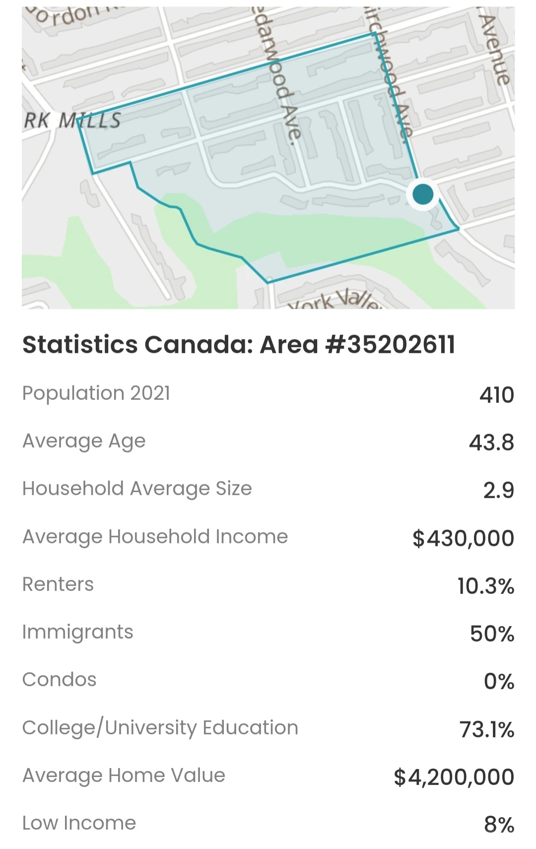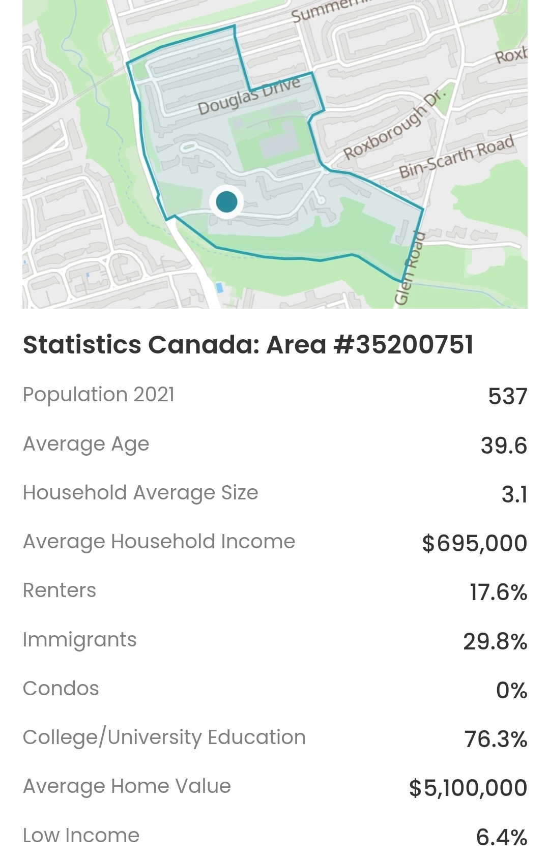 세계의 여느 큰 도시들과 마찬가지로 밝고 어두운 면을 함께 가지고 있는 토론토에도 서울과 강남의 유사한 관계를 가진 지역들을 찾아볼 수 있습니다. 캐나다 통계청에서는 5년마다 통계조사를 하고 결과를 통해 나온 정보를 누구나 쉽게 찾아볼 수 있도록 만들었습니다. 그러나 개인적으로 이 통계자료는 어떤 면에서는 상당히 민감한 부분까지도 드러내는 경우가 있다고 생각합니다. 이미 발표된 통계자료를 이용해 지난번 글에 이어 토론토에서 부동산 가격이 가장 비싼 지역 10곳과 그곳에 거주하는 사람들의 연령, 교육, 출신국가와 가구당 평균 수입에 대해서 알아보았습니다.