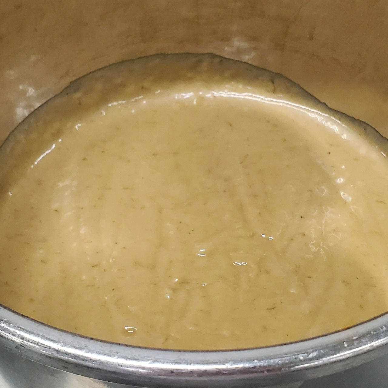1. 계량한 바나나, 백설탕, 흑설탕을 믹싱 보울에 넣고 바나나 덩어리가 없이 곱게 될 때까지 믹서(패들 사용합니다)나 핸드블랜더로 믹싱 합니다. (바나나 상태에 따라 3~5분 정도)