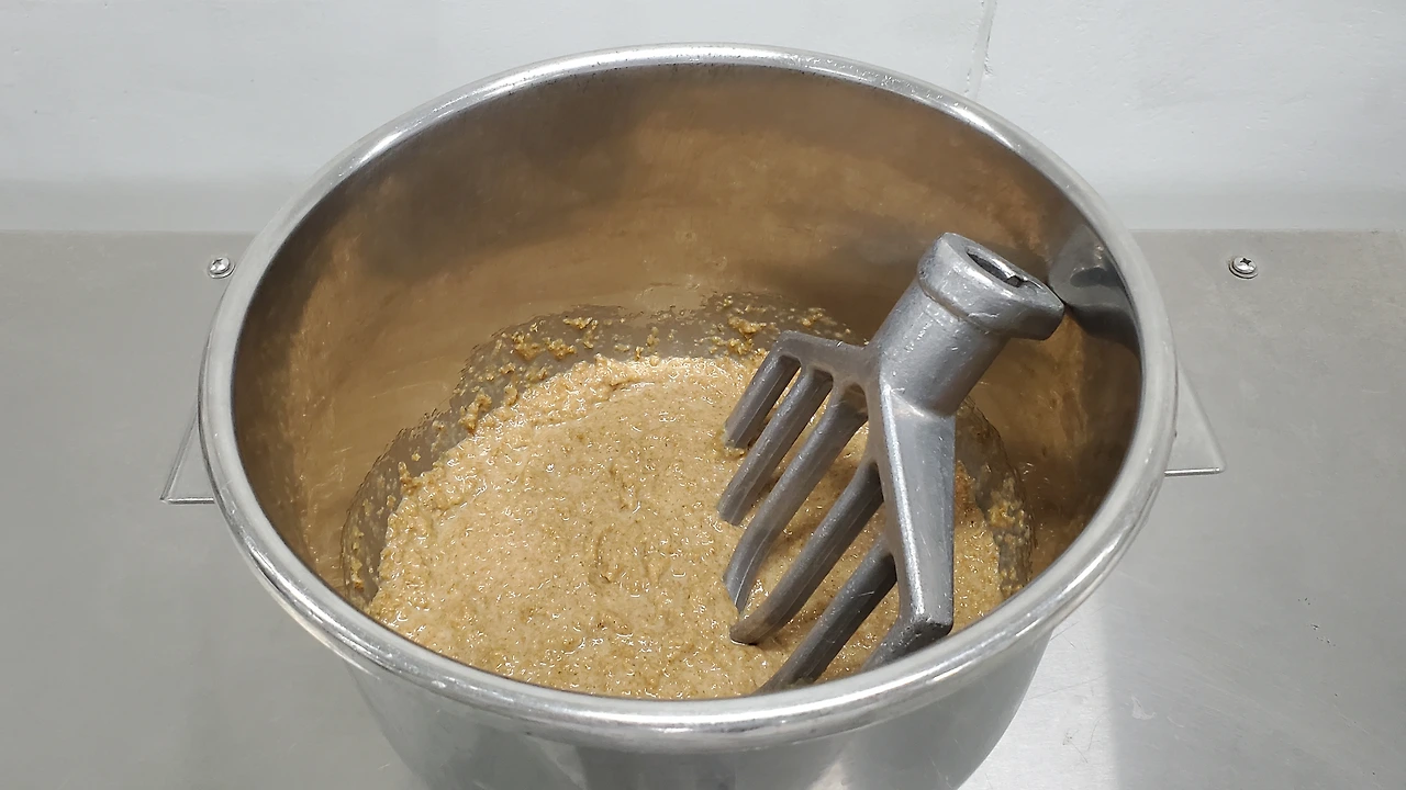 2. 믹싱이 끝난 보울에 건포도를 제외한 계량한 모든 재료를 넣고 느린 속도로 1분간, 중간 속도로 3분간 믹싱 합니다.