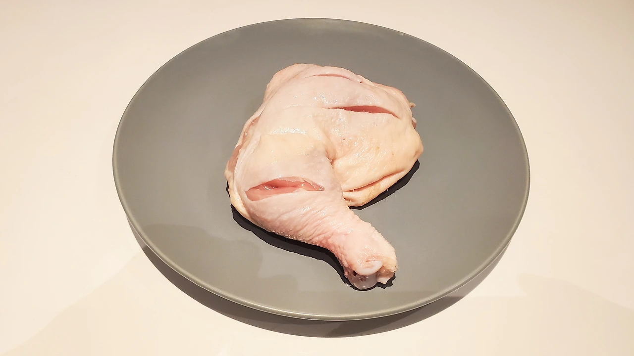 3. 닭다리 앞뒤로 칼집을 냅니다.