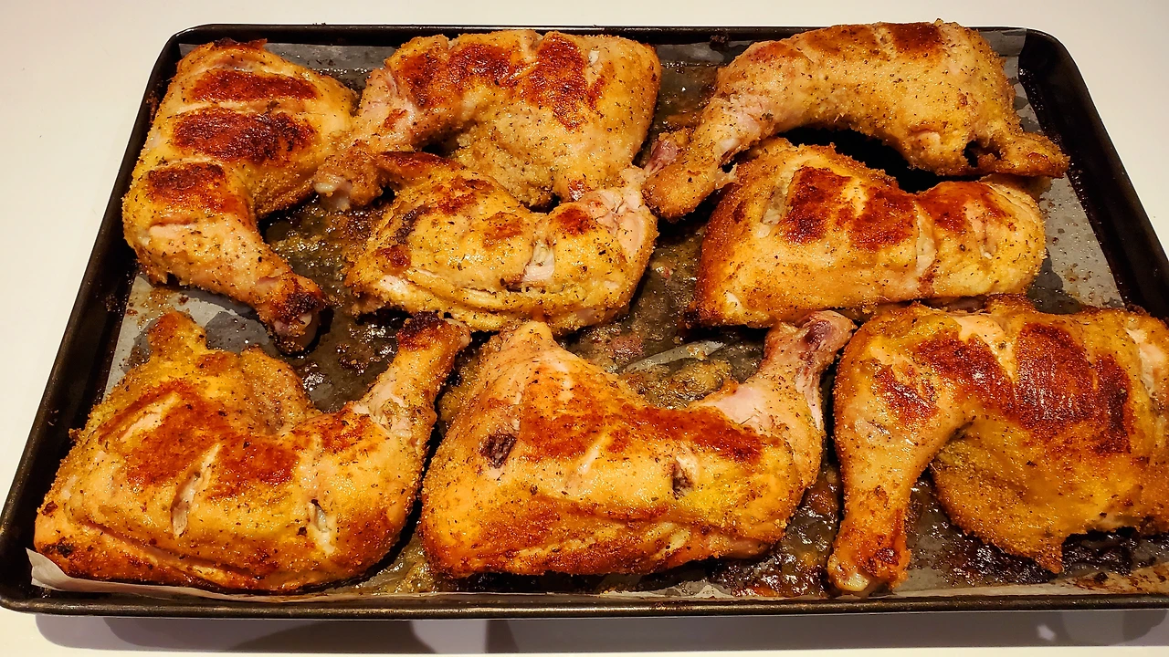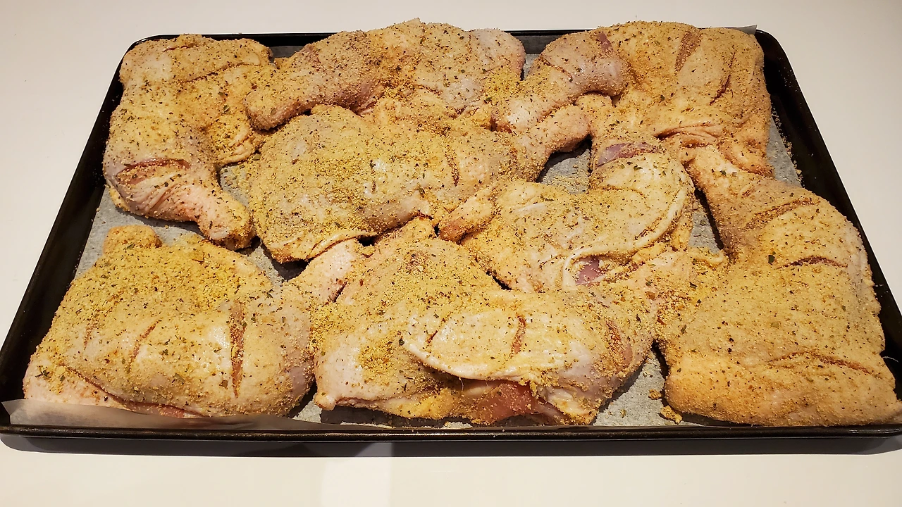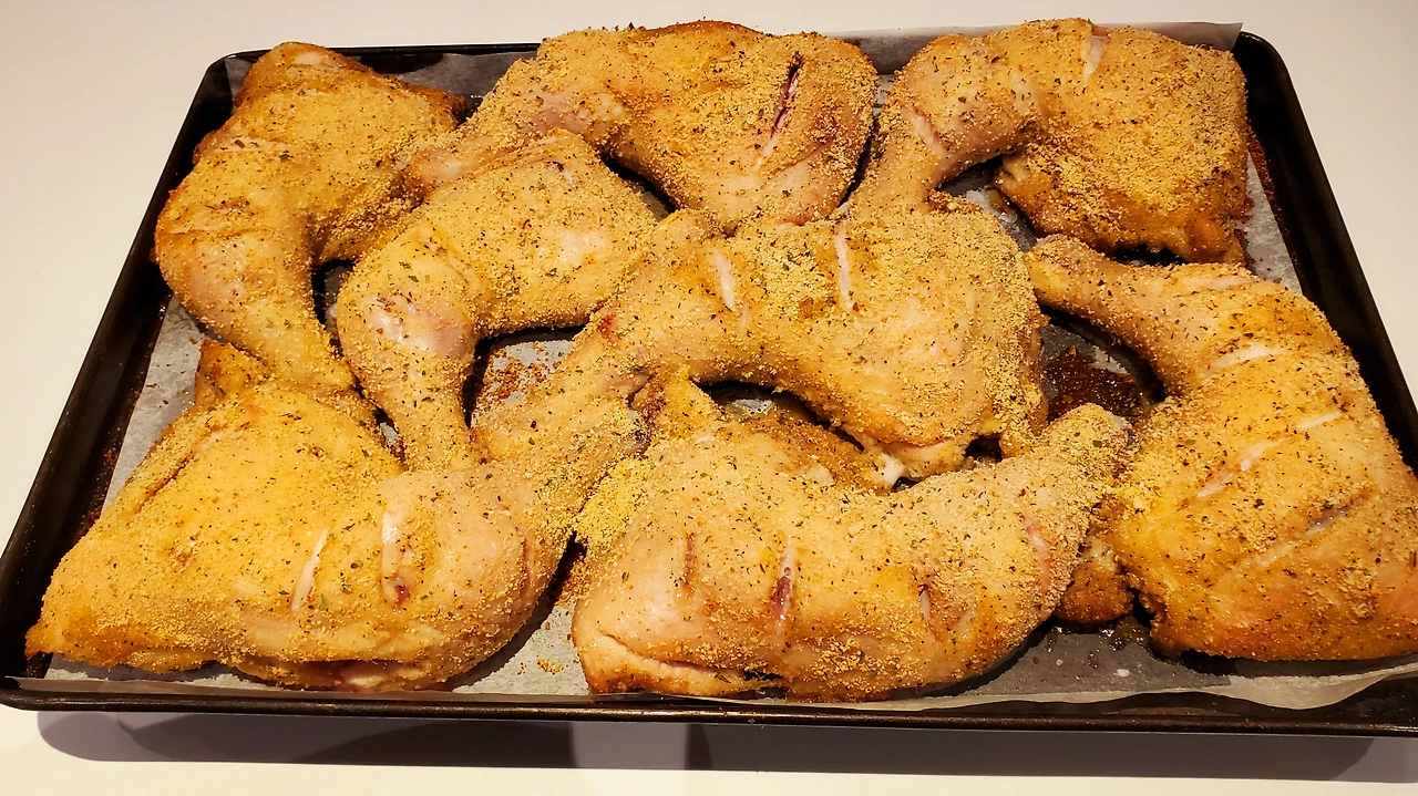 처음 30분 구운 후 뒤집어 놓고 오븐에 넣기 전 닭다리 모습