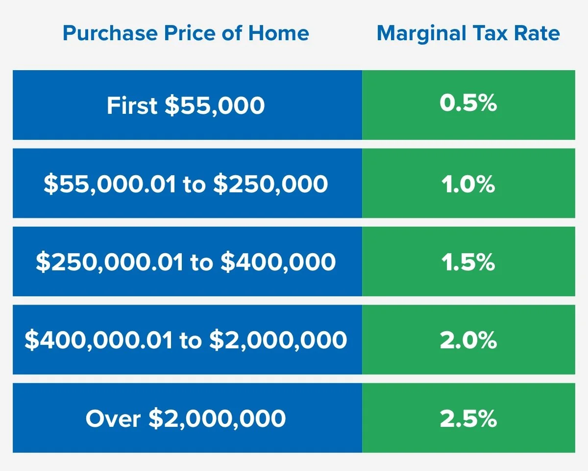 부동산을 구입할 때 구매하는 토지의 토지 양도세를 지불해야 합니다. 이 세금은 부동산에 대해 지불 한 금액과 구매 계약의 일부로 가정된 모기지 또는 부채에 대한 나머지 금액을 기준으로 합니다. 비용은 각 지방 자치 단체, 토지의 크기 및 기타 요인에 따라 다릅니다. Alberta,Saskatchewan, 및 Nova Scotia 주 일부 지역에는 토지 양도세가 전혀 없는 반면 다른 주에서는 계층화된 시스템을 사용합니다.