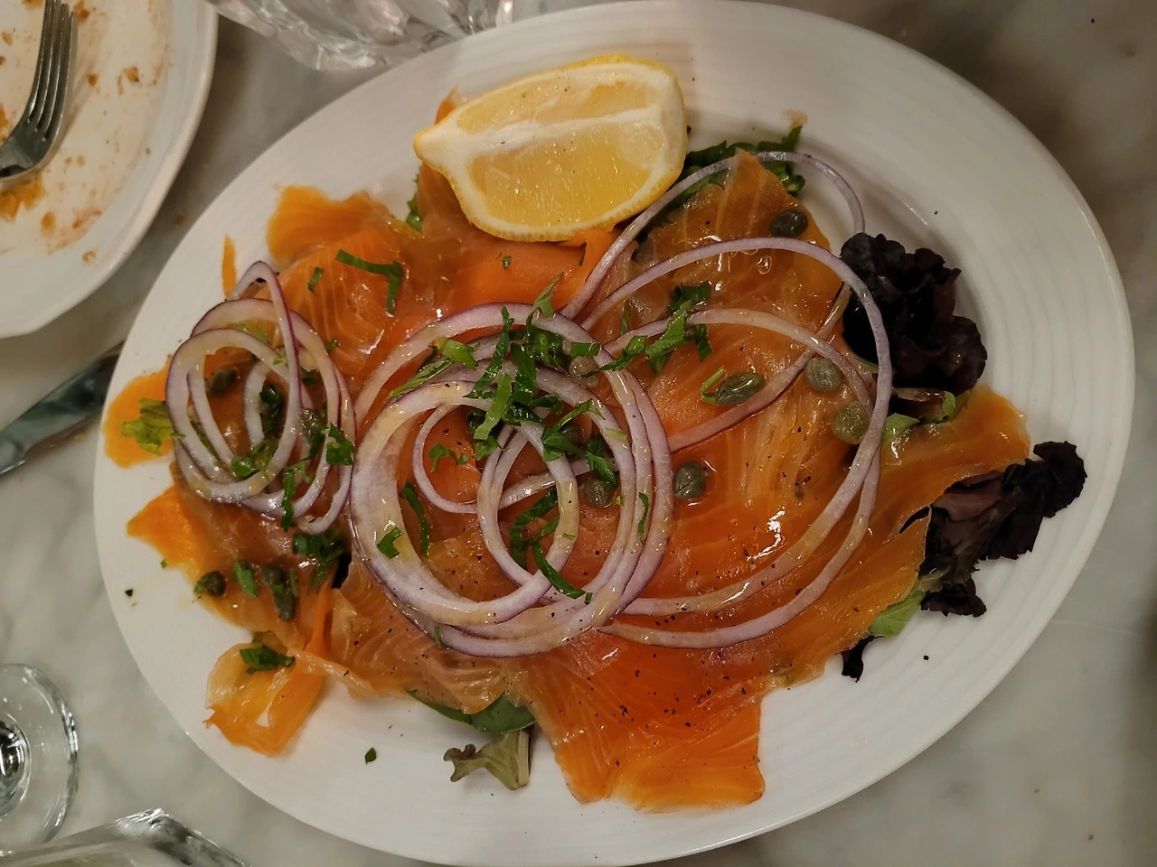 문제의 레스토랑에서 주문한 연어 카르파치오