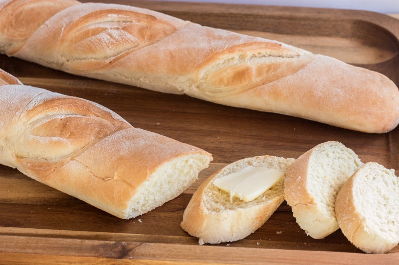 프렌치 바게트는 모양은 비슷하지만 프랑스에서 만든 것으로 크런치한 표면, 작은 기공 및 통풍이 잘되는 질감을 가지고 있습니다. 밋밋한 맛에 풍미를 더하기 위해 버터나 올리브 오일과 함께 먹기도 하며 빵의 겉면은 매끄럽고 갈색이어야 하며 측면은 곧고 규칙적이어야 합니다.