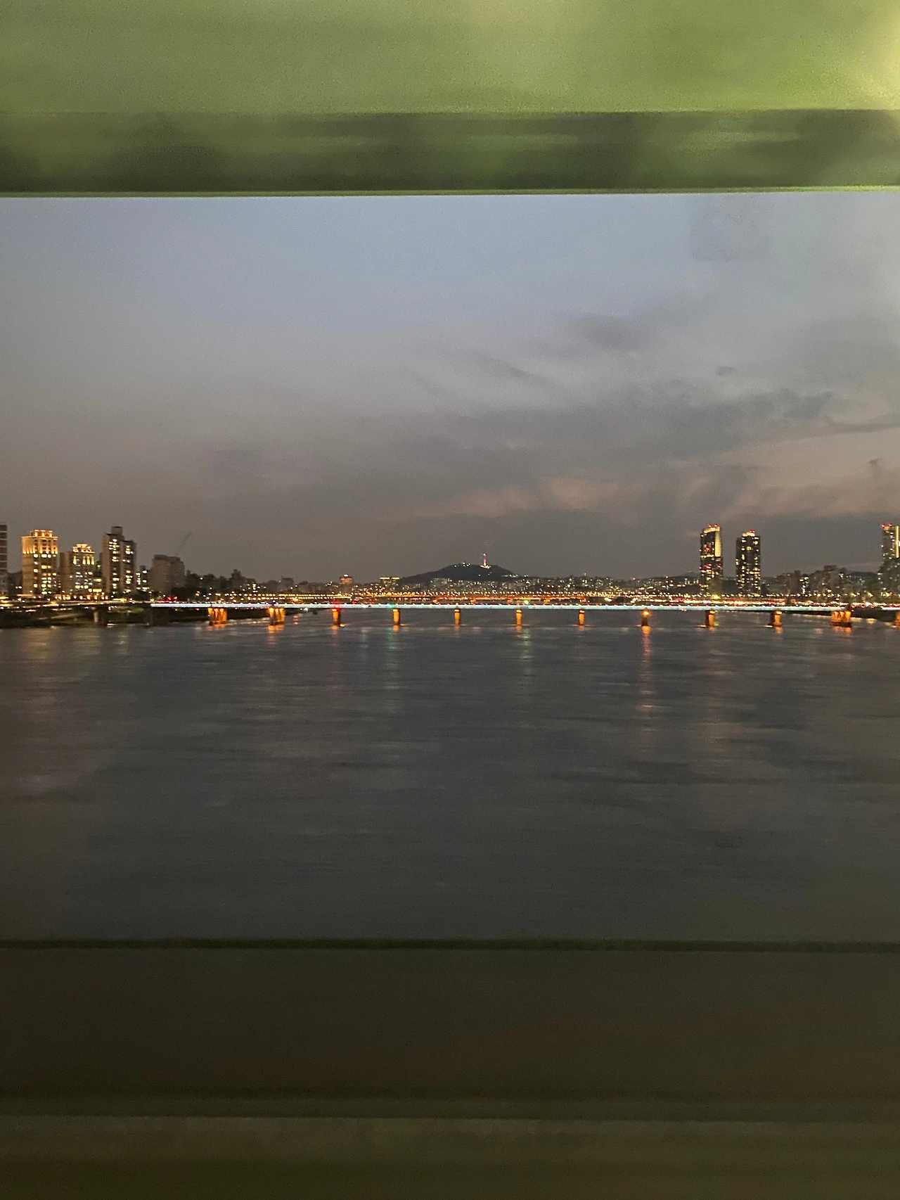 야근한 덕분에 반짝이는 한강을 본다. 예쁜 야경을 담고 싶지만 쉽지 않다. 셔터스피드는 느린데 지하철은 빠르게 달린다.