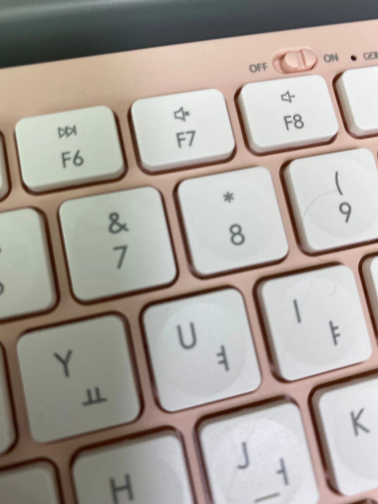 흔히들 분홍색을 '여성스러운 색', '여자가 좋아하는 색'이라고 하는데. 개인적으로 난 분홍색을 선호하지 않는다. 치마보다는 바지가, 길게 풀은 헤어스타일보다는 짧게 묶은 헤어스타일이 편해서인지 여성스러움과는 거리가 멀다. 그래선가 분홍색으로 가득한 에뛰드 하우스 같은 화장품 가게나 커피숍에 가면 손발이 오글거리는 느낌이 든다. 이런 내가 어쩌다 분홍색 키보드를 사게 되었을까. 쿠팡에서 가장 빠르게 배송되면서도 저렴한 제품을 고르다 보니 핑크색 키보드가 집에 있게 되었다. 컴퓨터를 켜지 않고 휴대폰에서 빠르고 편하게 글을 쓰겠다며 구입한 무선 키보드지만, 지금은 아이의 장난감이 되어 버렸다.