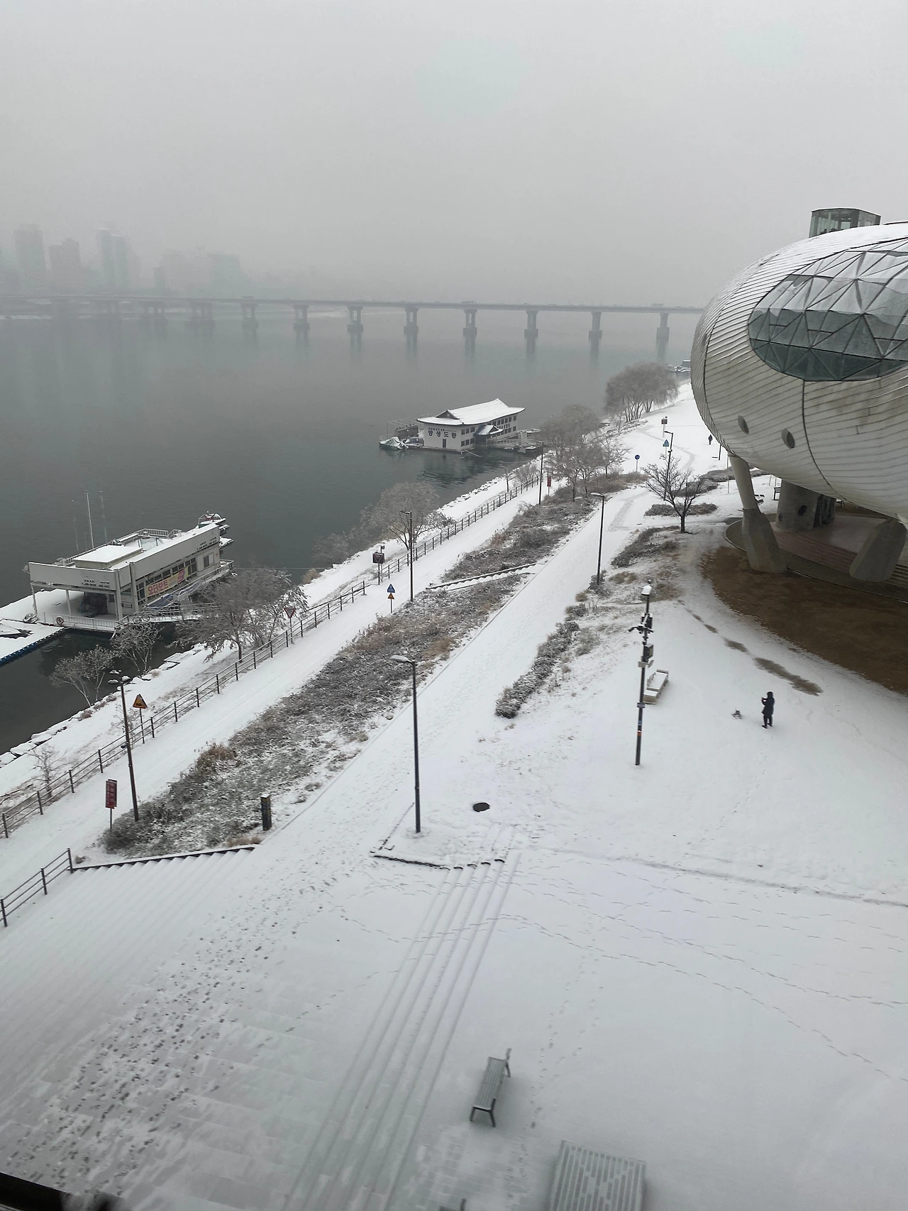 아침에 일어나 베란다를 보며 외마디 탄성 후 출근길을 걱정했다. 지하철에 사람들이 많을 거기에, 길을 느리게 걸어야 하기 때문에 서둘러 준비하고 밖으로 나왔다. 집에서와 달리 하얀 눈옷을 입은 길을 보니 기분이 좋아졌다. 아무도 밟지 않은 곳을 골라 내 발자국을 남긴다. 성큼성큼 걸으며 출근길의 흔적을 남긴다. 그리고 아들을 생각한다. 길도 나무도 자동차도 하얗게 변한 걸 아들이 보면 신기해할 거 같다고. 눈을 만지며 가는 등원길이 즐거울 거 같다고.