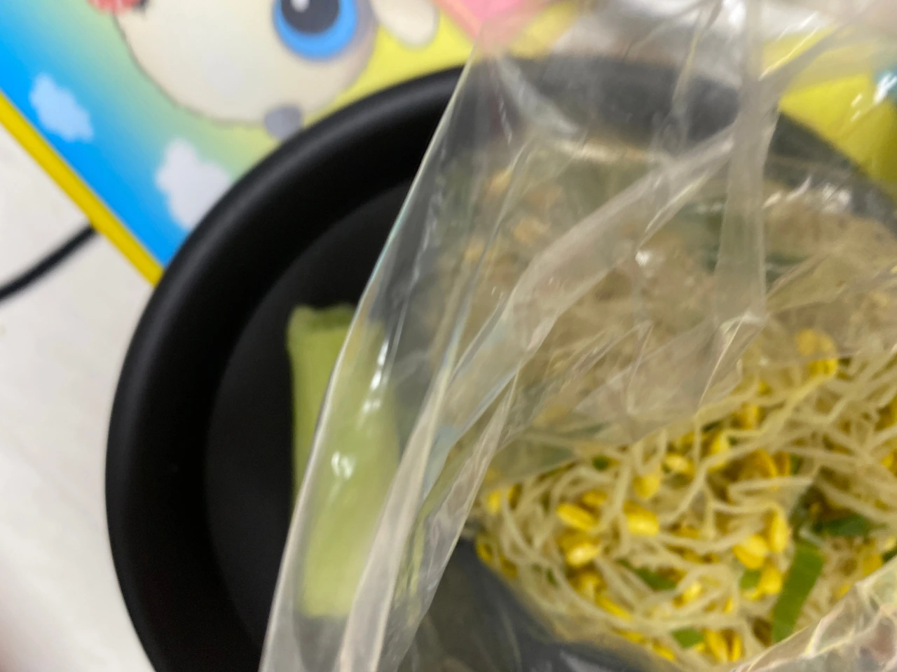 콩나물 반찬도 그중 하나였다. 아이는 나물 반찬을 좋아한다. 식판에 덜어주기 위해 책상 위에 올려둔 봉지를 아이가 찍었다. 어디서 보고 배웠을까, 흔히 말하는 항공샷으로 찍는 아이의 모습이 귀여웠다. 그렇게 남긴 사진을 보고 있노라니 다시 한번 엄마께 감사함을 느끼게 된다. 콩나물처럼 무럭무럭 잘 자라길 바라는 할머니의 마음이 보인다.