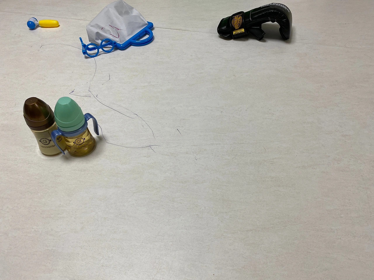 복싱 글러브와 물통, 그리고 장난감이라니 이 조합은 뭘까?