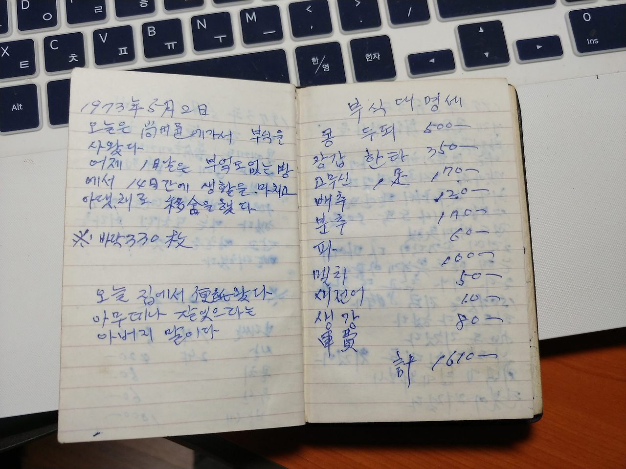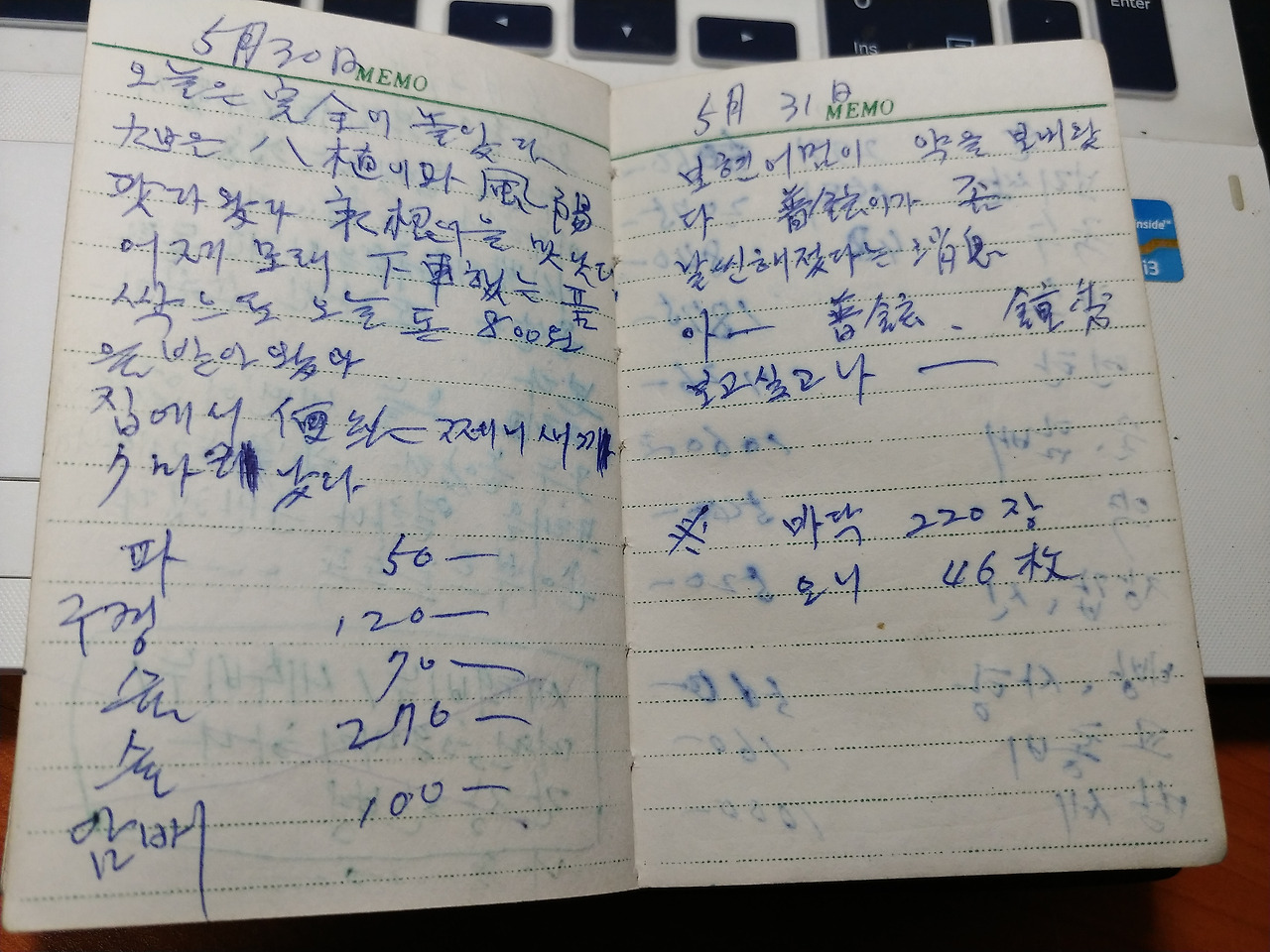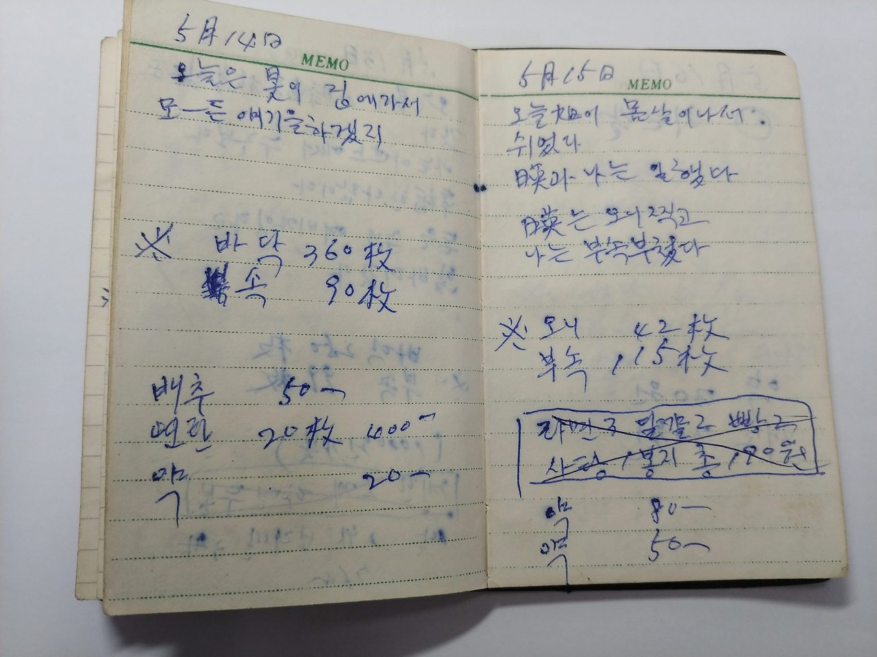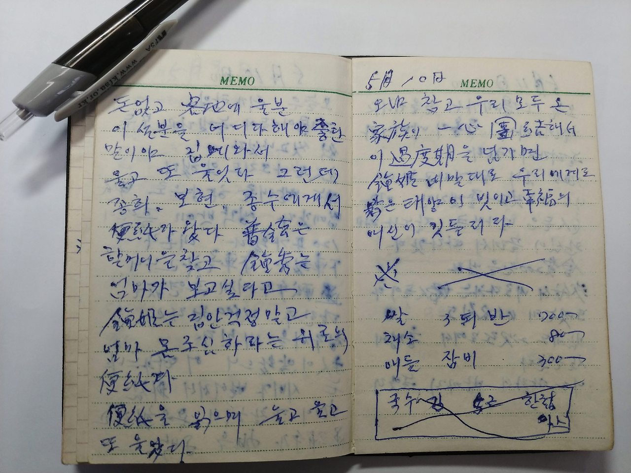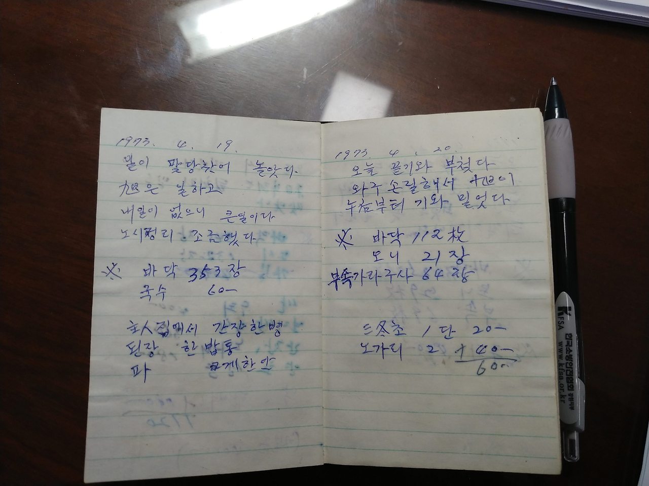 경북 상주 사벌면 낙동리 기와공장에서 막노동을 하면서 쓴 어머니의 일기장이자 가계부입니다.