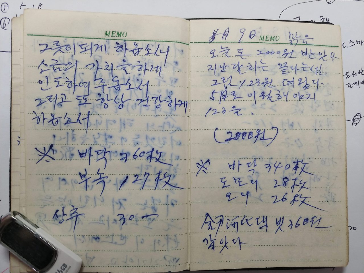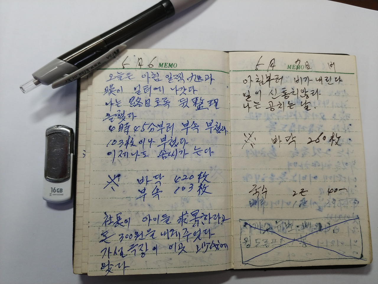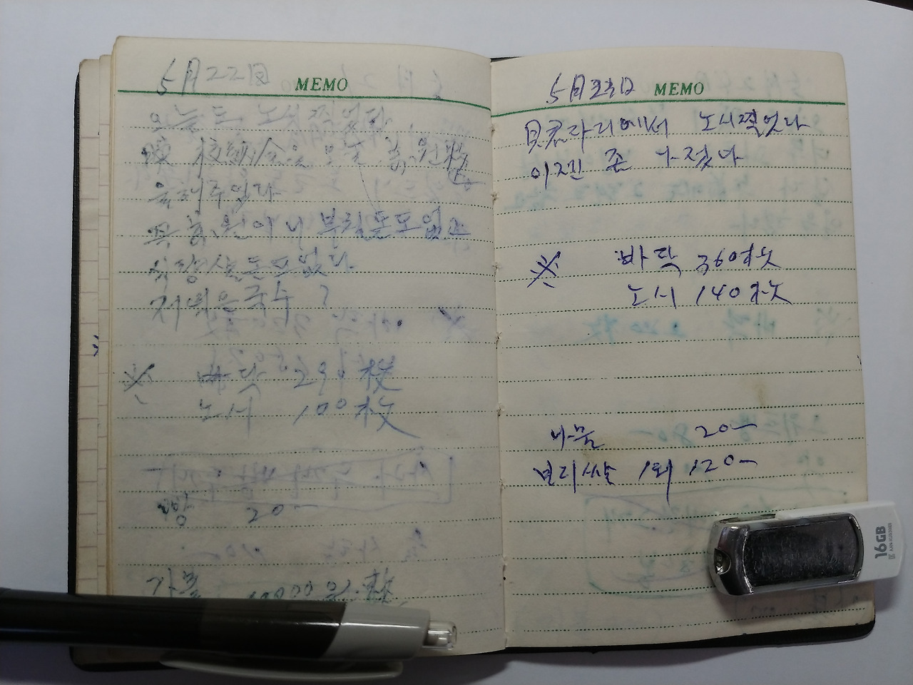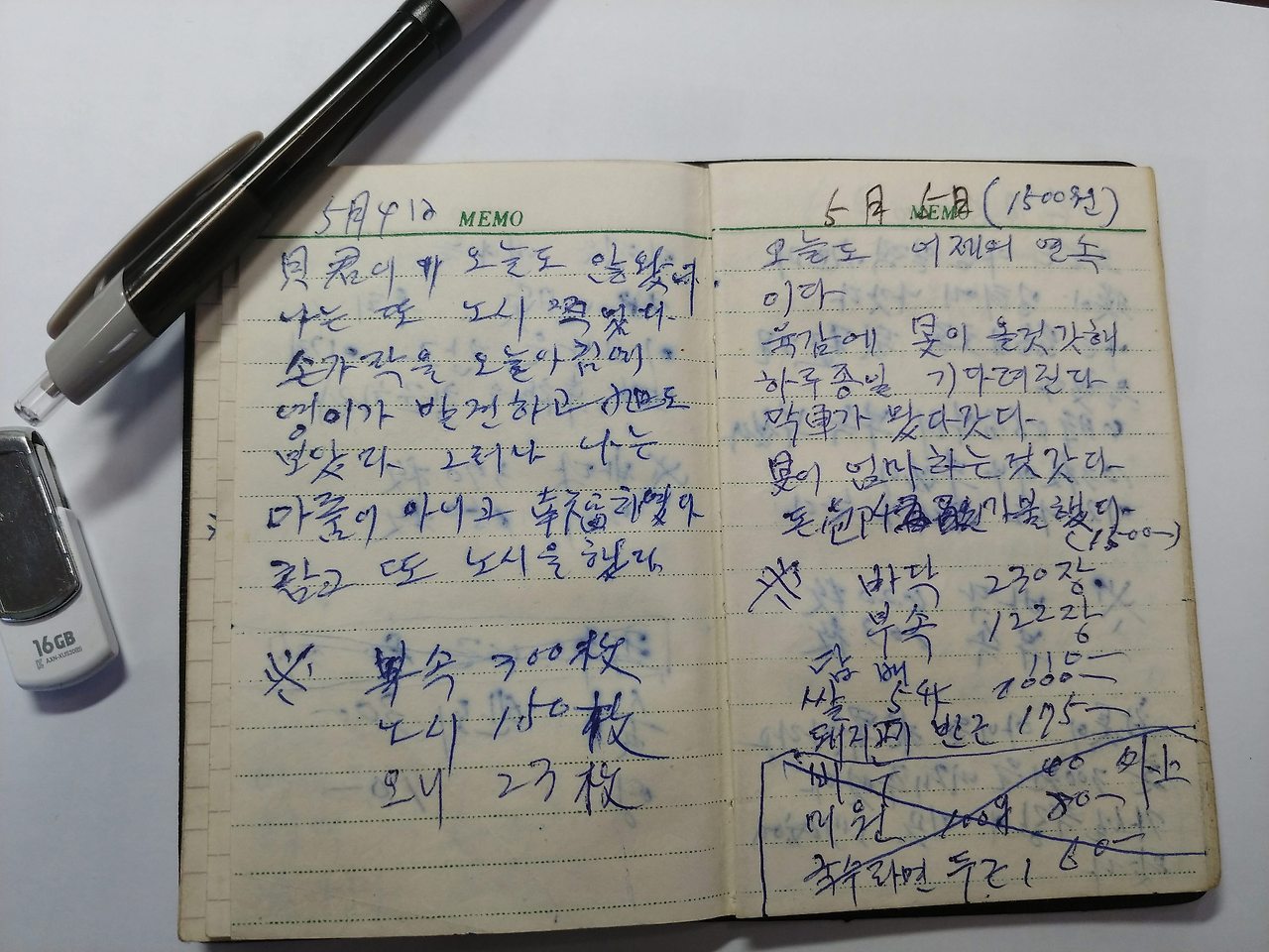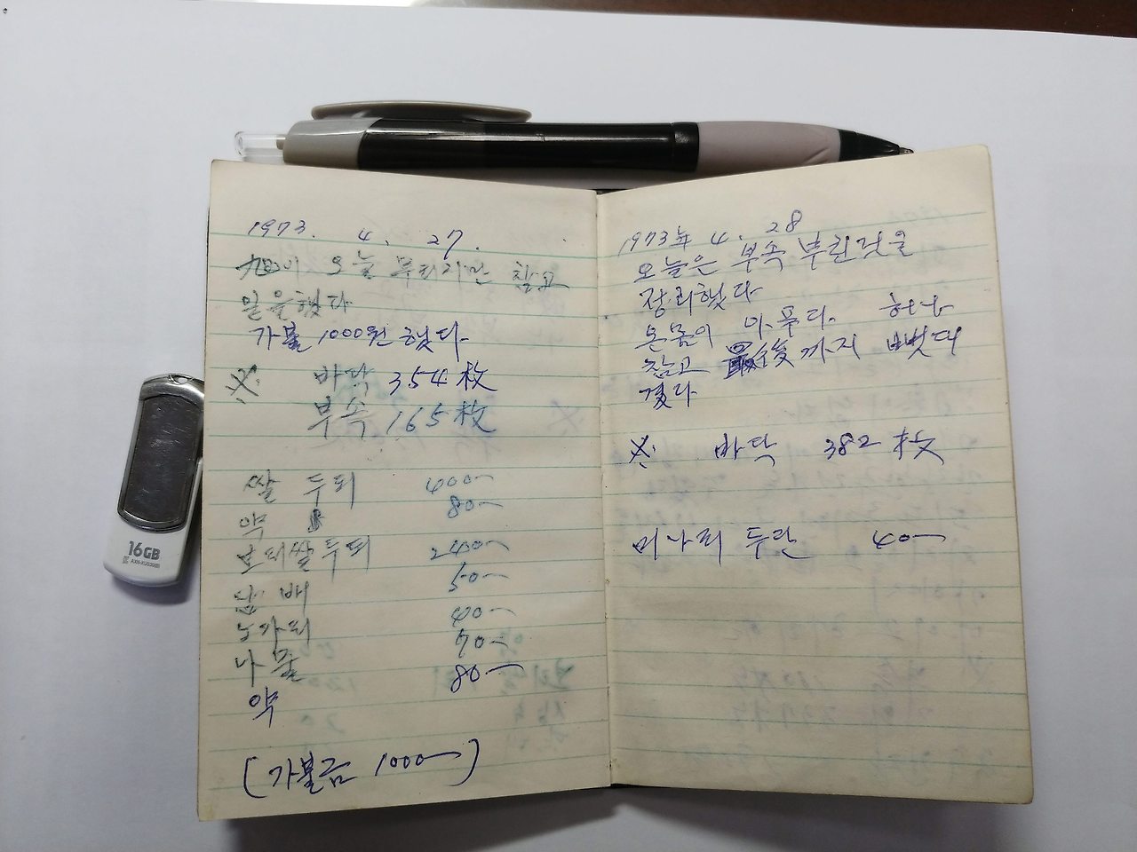 경북 상주 사벌면 낙동리 기와공장에서 막노동을 하면서 쓴 어머니의 일기장이자 가계부입니다.