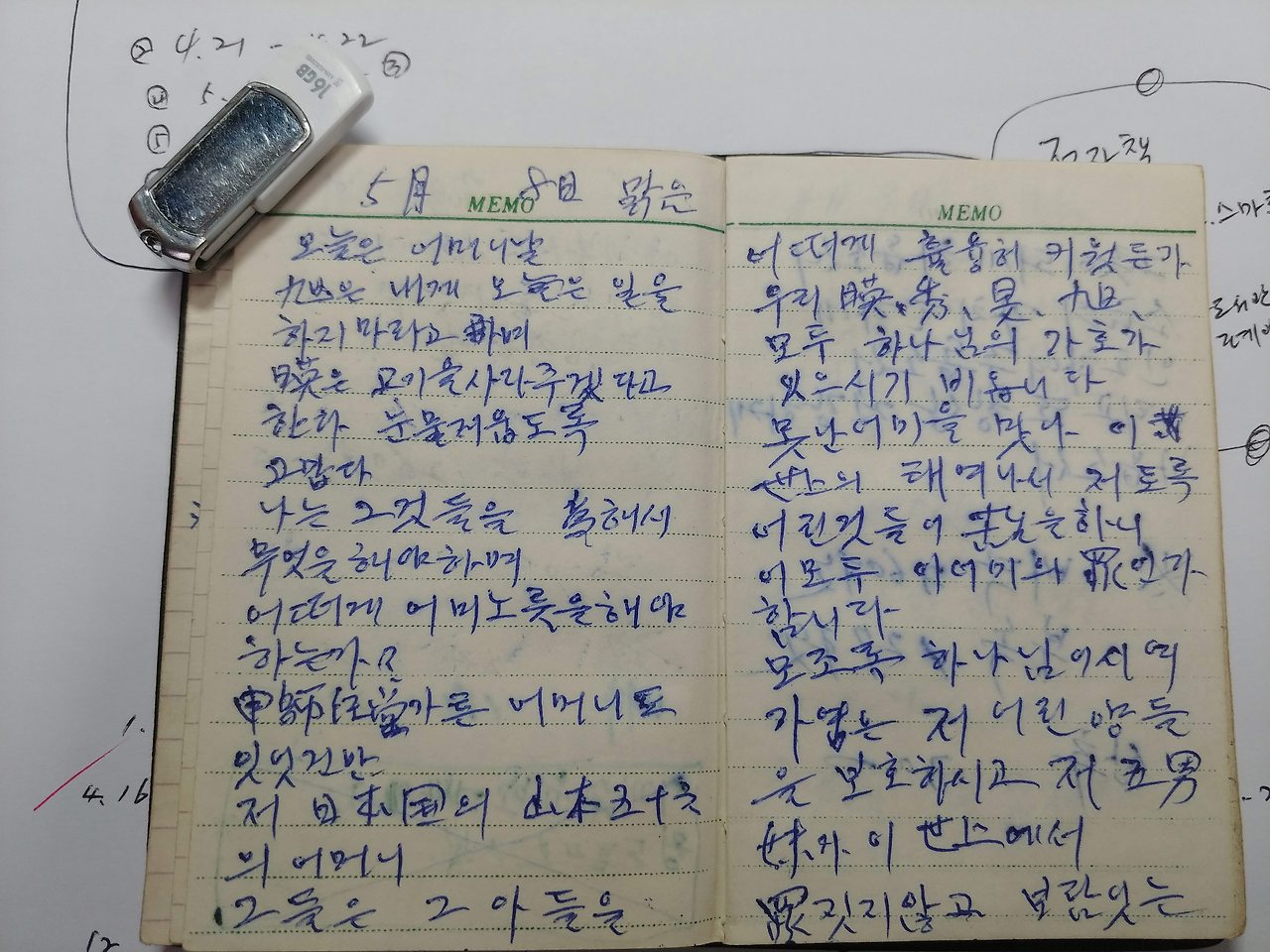 눈물로 읽을 수밖에 없는 어머니의 가슴 아픈 이 일기장을 보며 과거가 과거로 정지하지 않았고 계속 숨 쉬고 있었던 게지요.