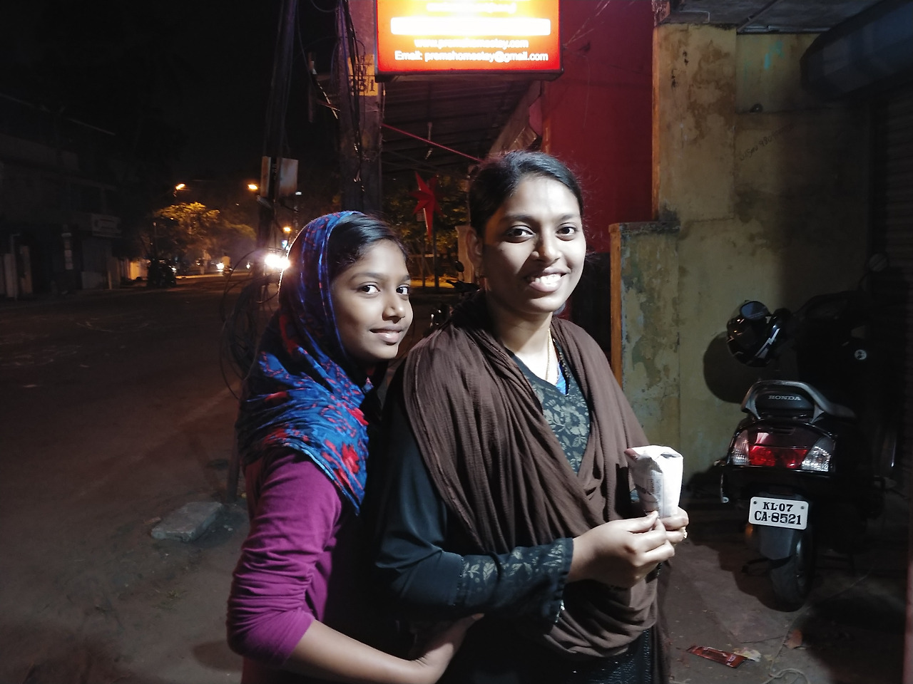 밤에 간식을 사러 가서 만난 인도 소녀들, 흔쾌히 미소로 응시하는 인도사람들의 미덕은 무엇인가.....