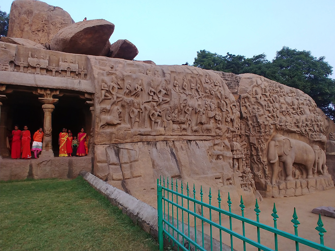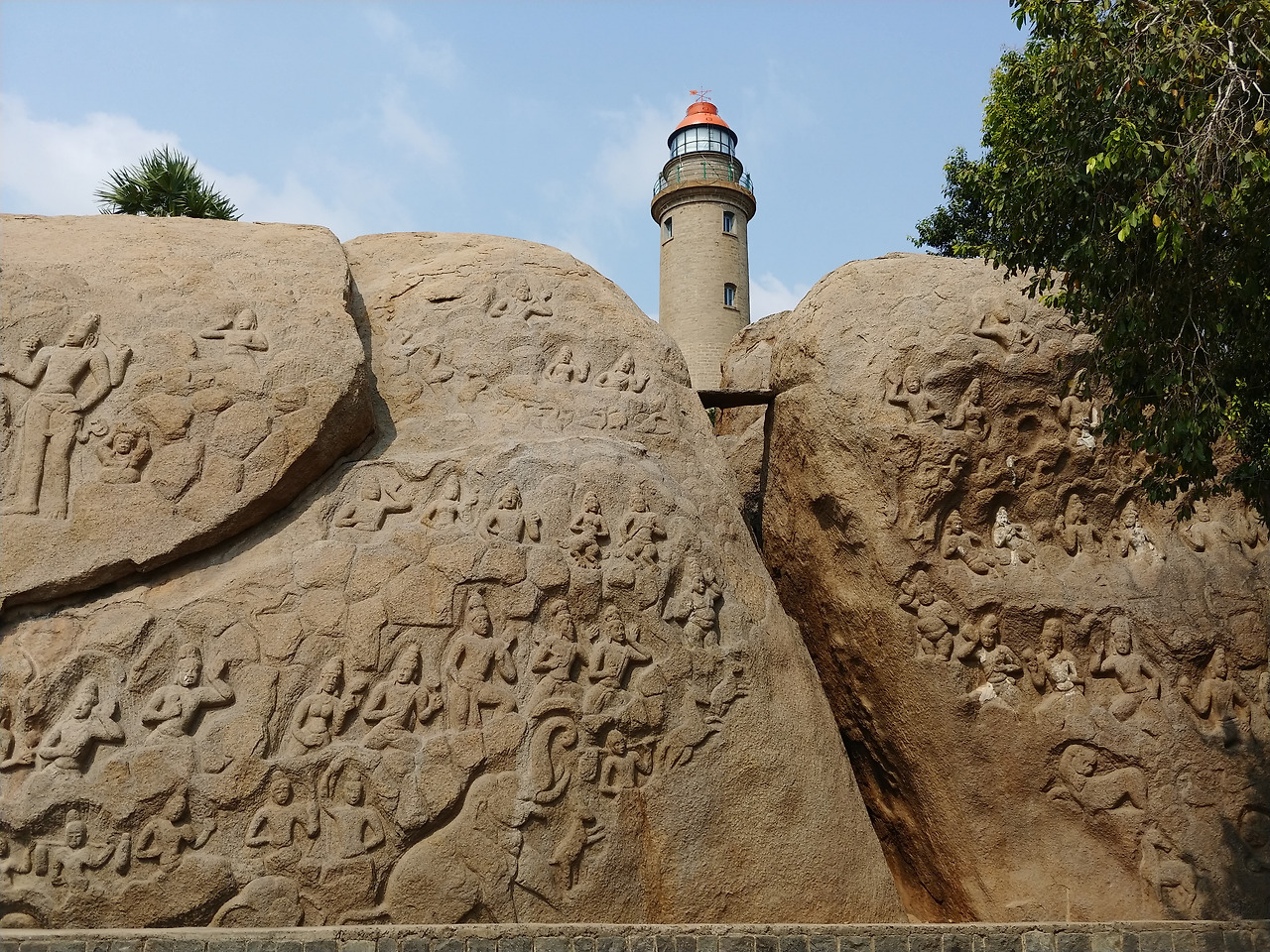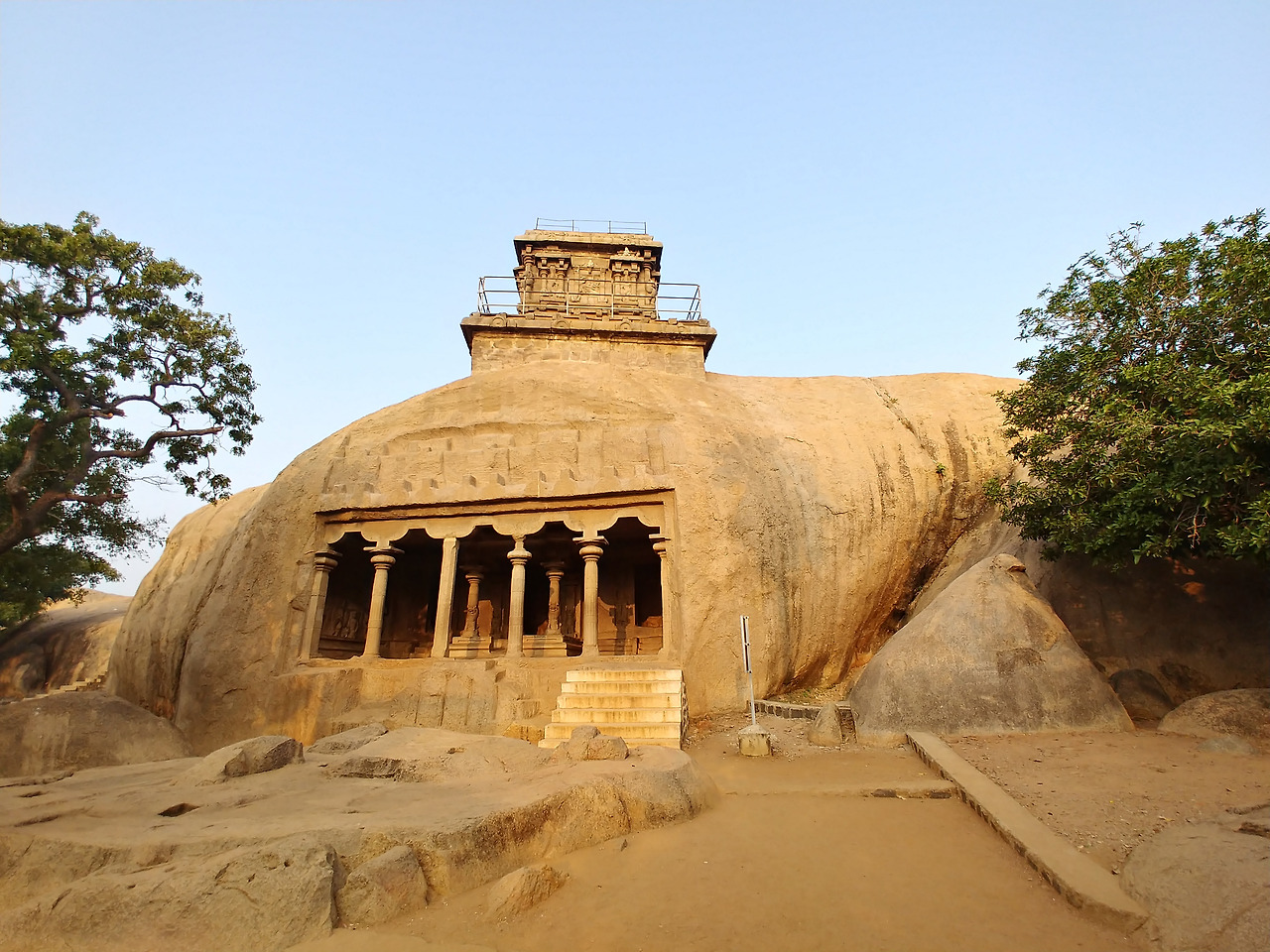아르주나의 고행상, 중력을 거부하는 거대한 바위 덩어리 크리쉬나 버터 볼, 해변 사원, 다섯 개 사원, 등대 그와 크고 작은 케이브,