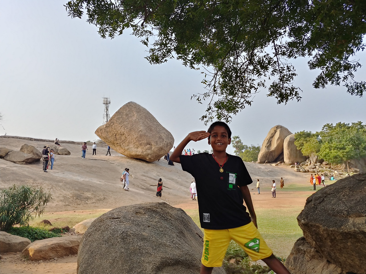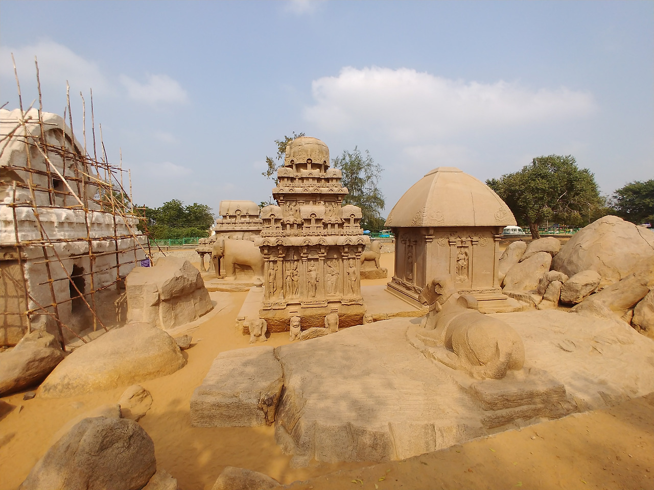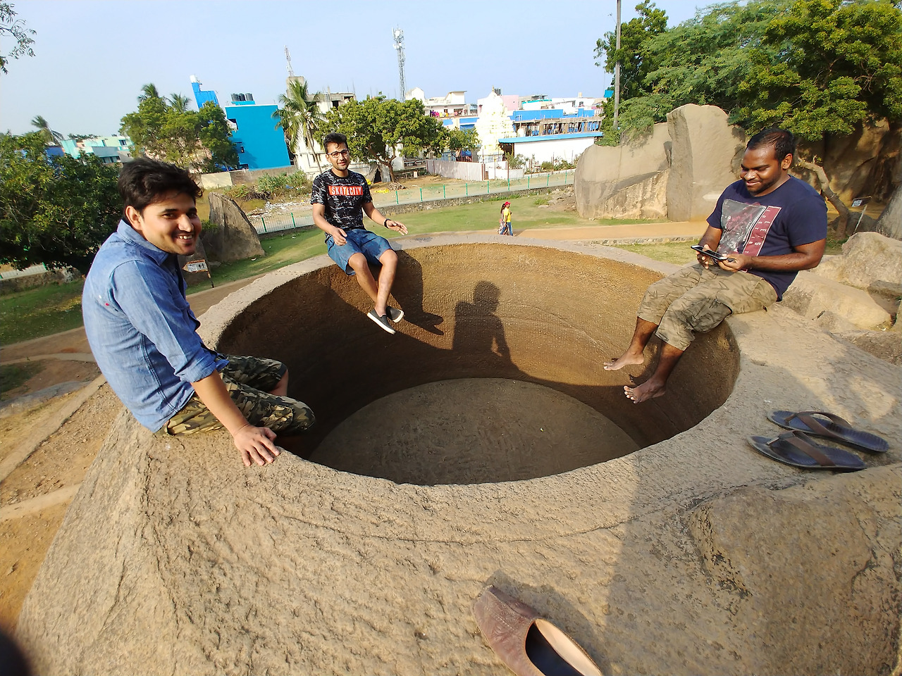 아르주나의 고행상, 중력을 거부하는 거대한 바위 덩어리 크리쉬나 버터 볼, 해변 사원, 다섯 개 사원, 등대 그와 크고 작은 케이브,