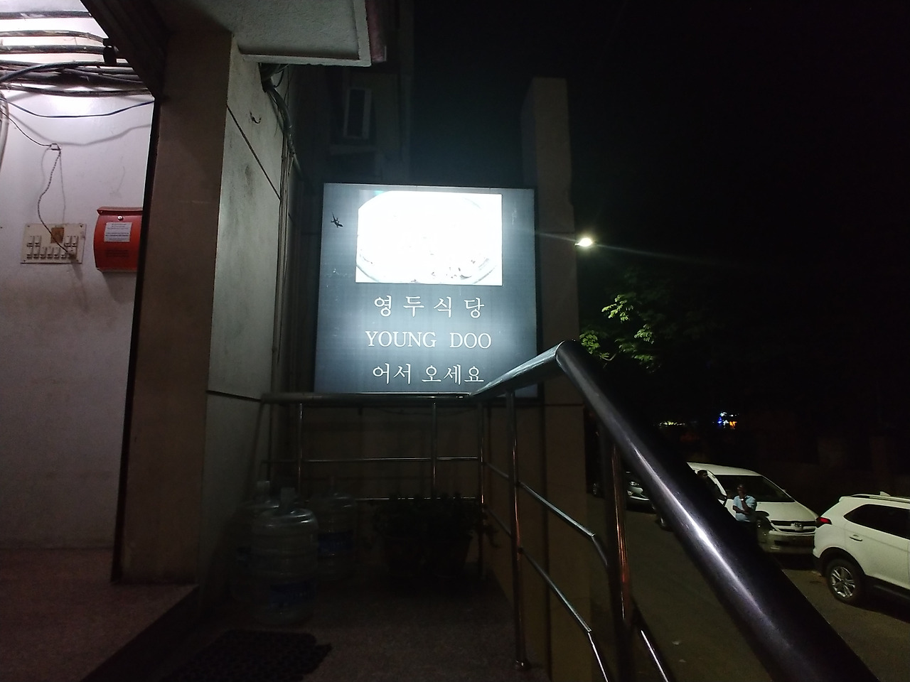 그 이름도 한국식으로 유치 찬란한 <영두 식당>, 김치찌개 550루피 세금 포함, 소주 한 병 880루피 거의 만 오천 원, 왕복 우버 택시비 340루피, 약 1,800루피(약 삼만 육천 원 정도)를 썼습니다.