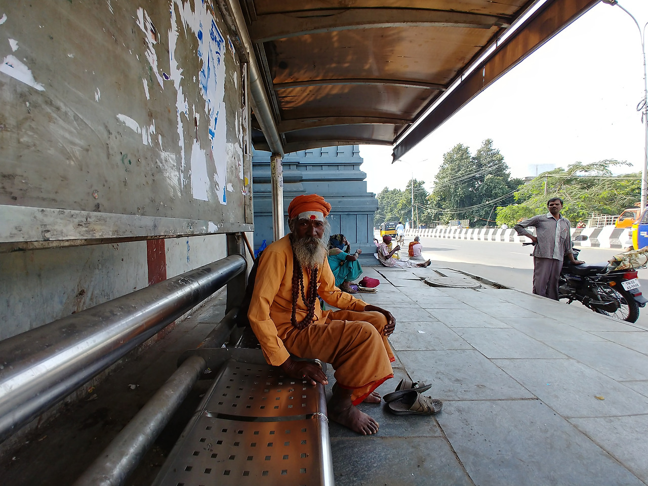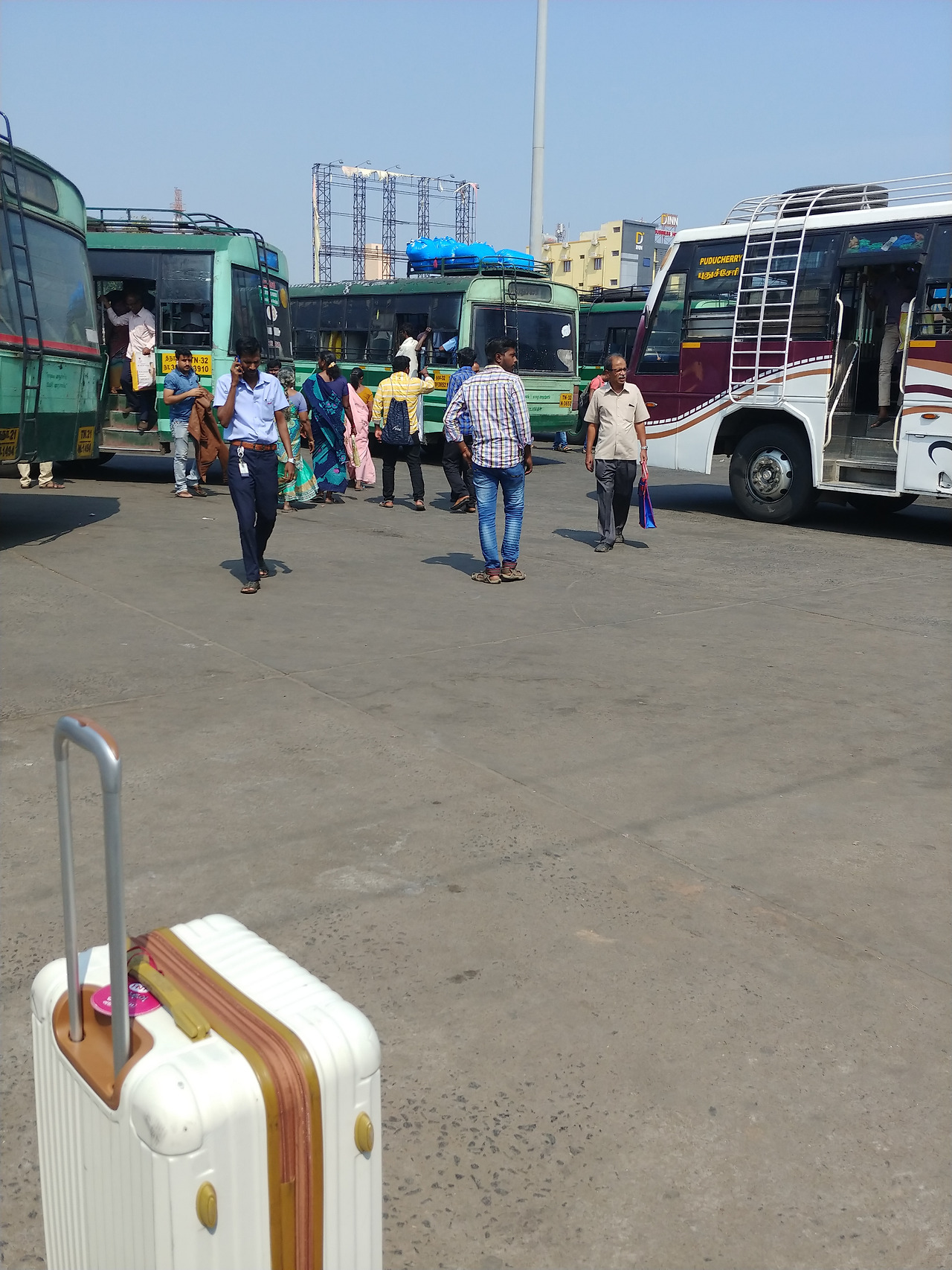 마말라푸람에서 퐁디셰리를 가기 위해 시외버스 타는 곳에서 기다리는데