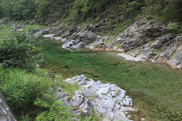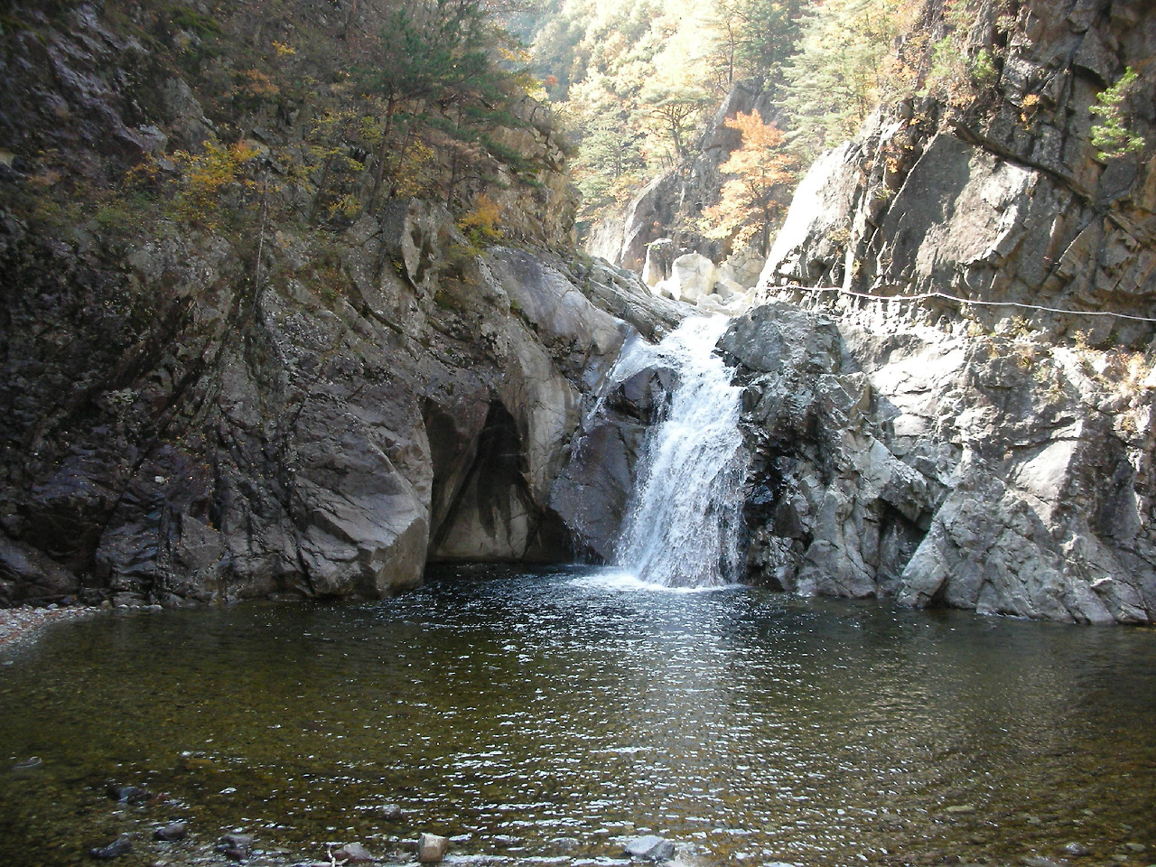 기암괴석과 수풀을 뛰어넘으며 떠드는 시냇물 소리만 계곡 가득