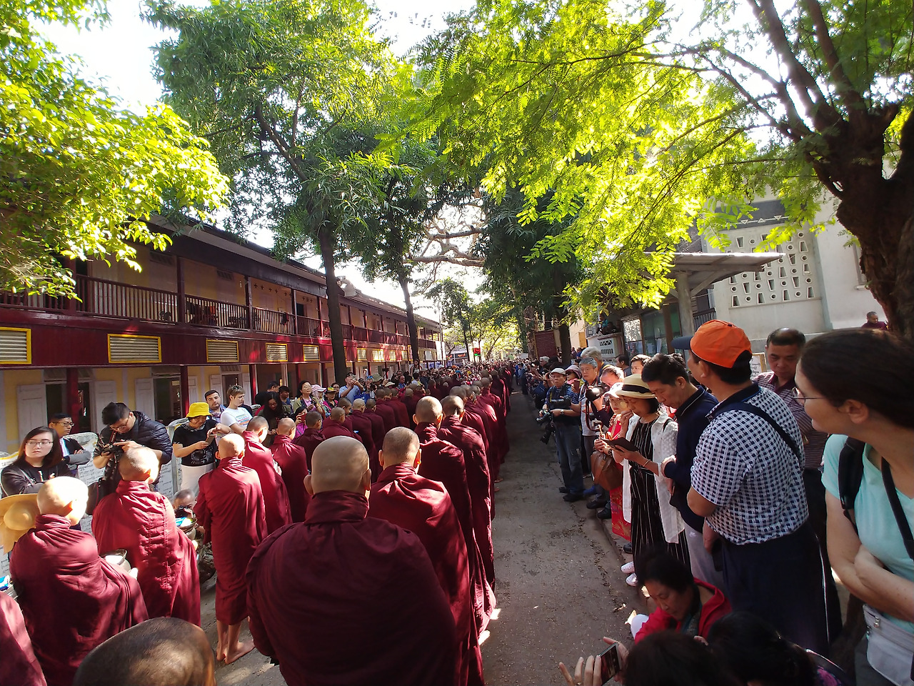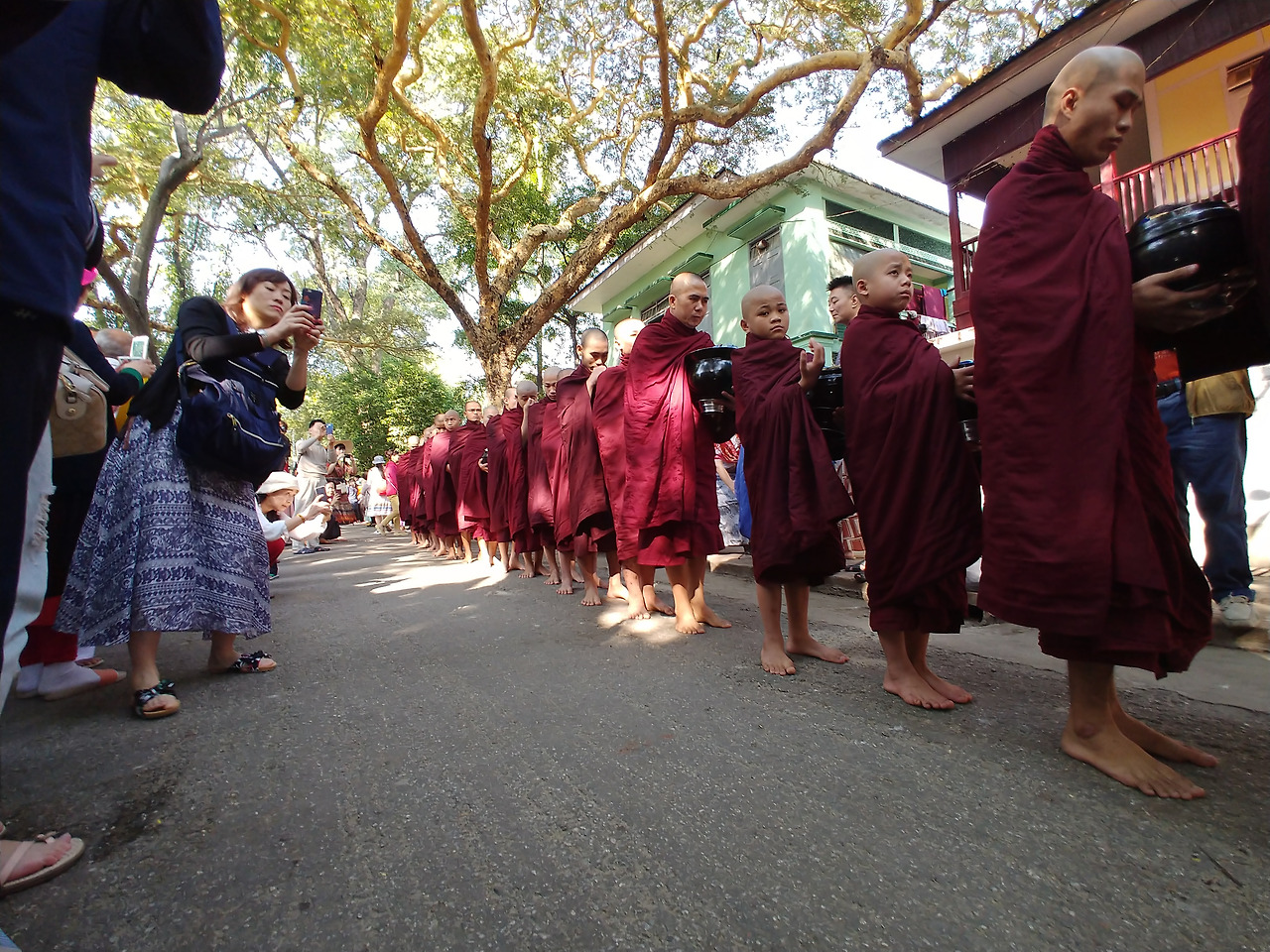 승려들의 탁발 행렬을 바로 옆에서 볼 수 있는 불교대학 <마하 간다 용 짜웅>
