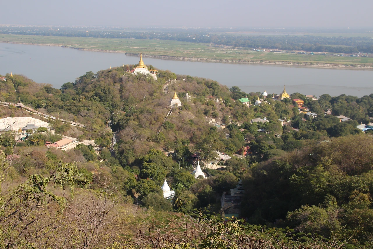 높이 240m 만달레이 힐은 누구나 만달레이를 방문했으면 꼭 올라야 하는 랜드마크--정상에서 내려다보는 전경은 왜 만달레이를 불교 성지 순례로 가야 하는지를 대변해준다. 특히 황금빛으로 물들어 가는 일몰 때 이곳에 서있는 것조차 행복하다.