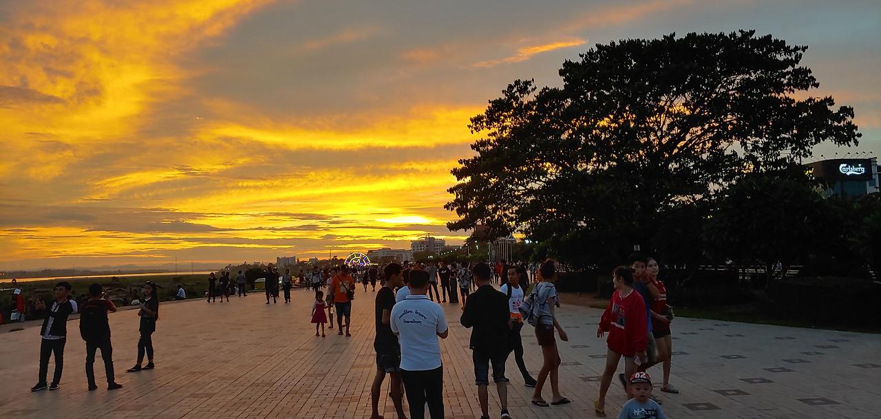 메콩강변의 빅트리가 있는 카페에서 그윽한 저녁놀과 신비스러운 기운을 같이 마셔서