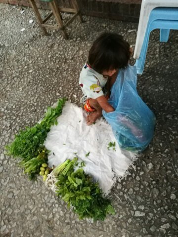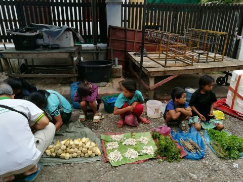 루앙프라방의 새벽시장에서 풋풋하고 여리고 슬픈 야채, 나물 같은 것들을 파는 어린 상인들...