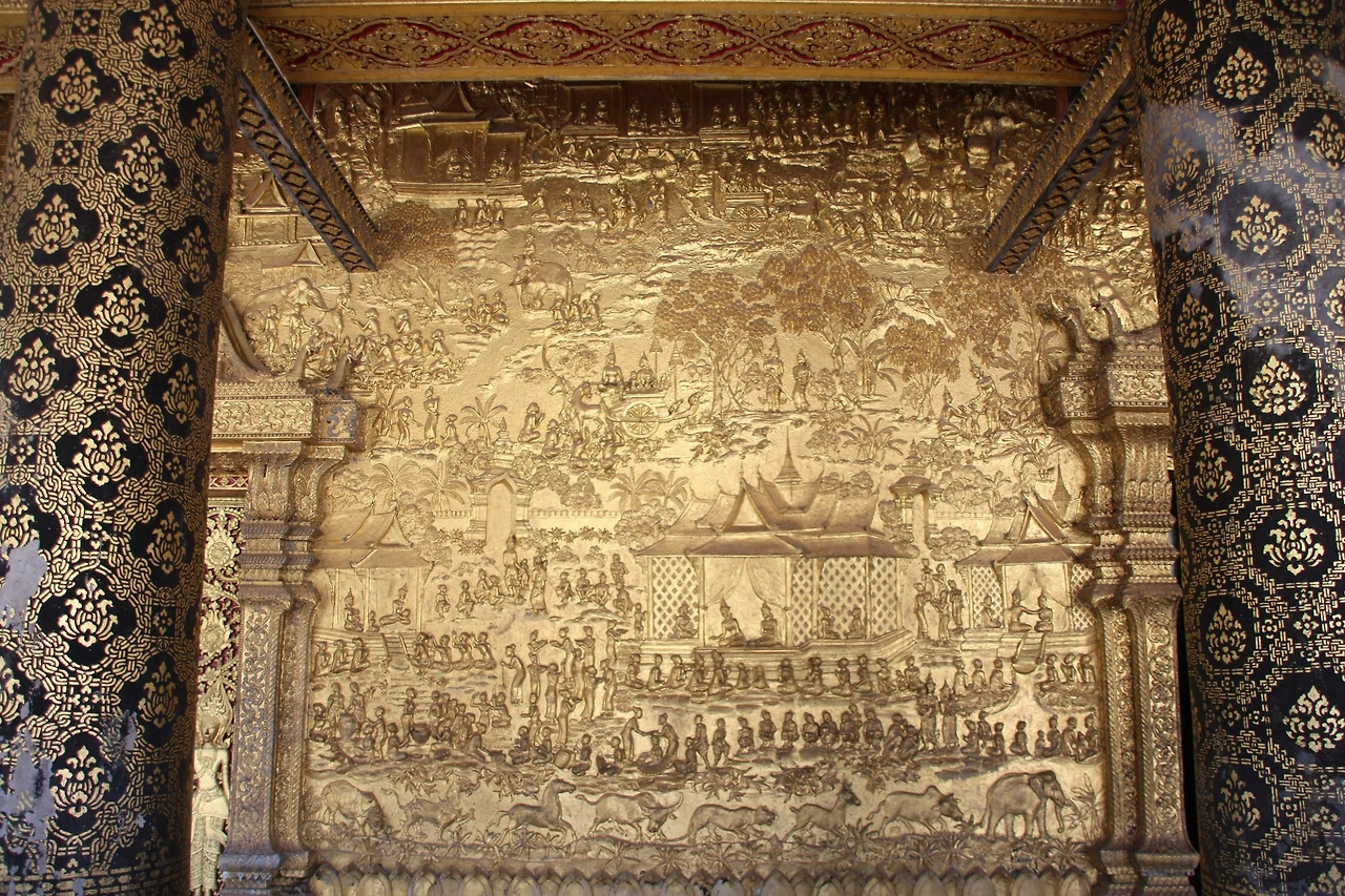 사원 내부의 금빛 벽화는 <라마야나>와 부처의 생애를 담은 <짜따까 Jataka>를 소재로 삼았고