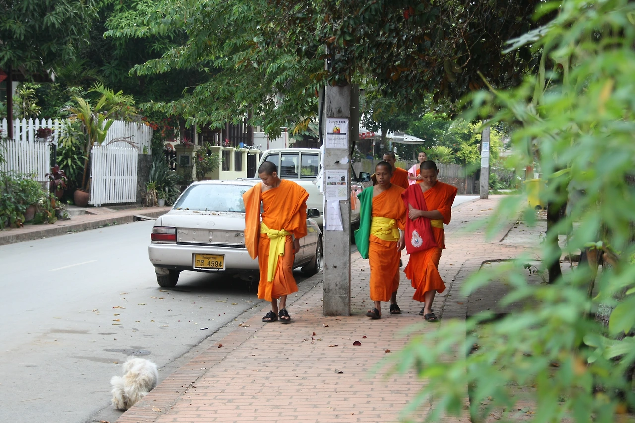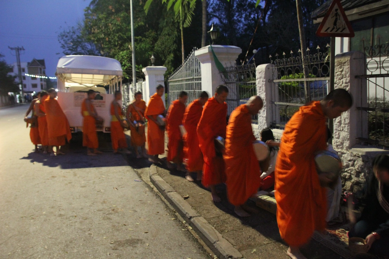 루앙프라방에는 새벽 6시가 되면 딱밧을 나온 승려들의 기다란 행렬과 무릎을 조아리고 승려들에게 온갖 음식을 공양하는 신도들의 모습을 골목 곳곳에서 볼 수 있다.