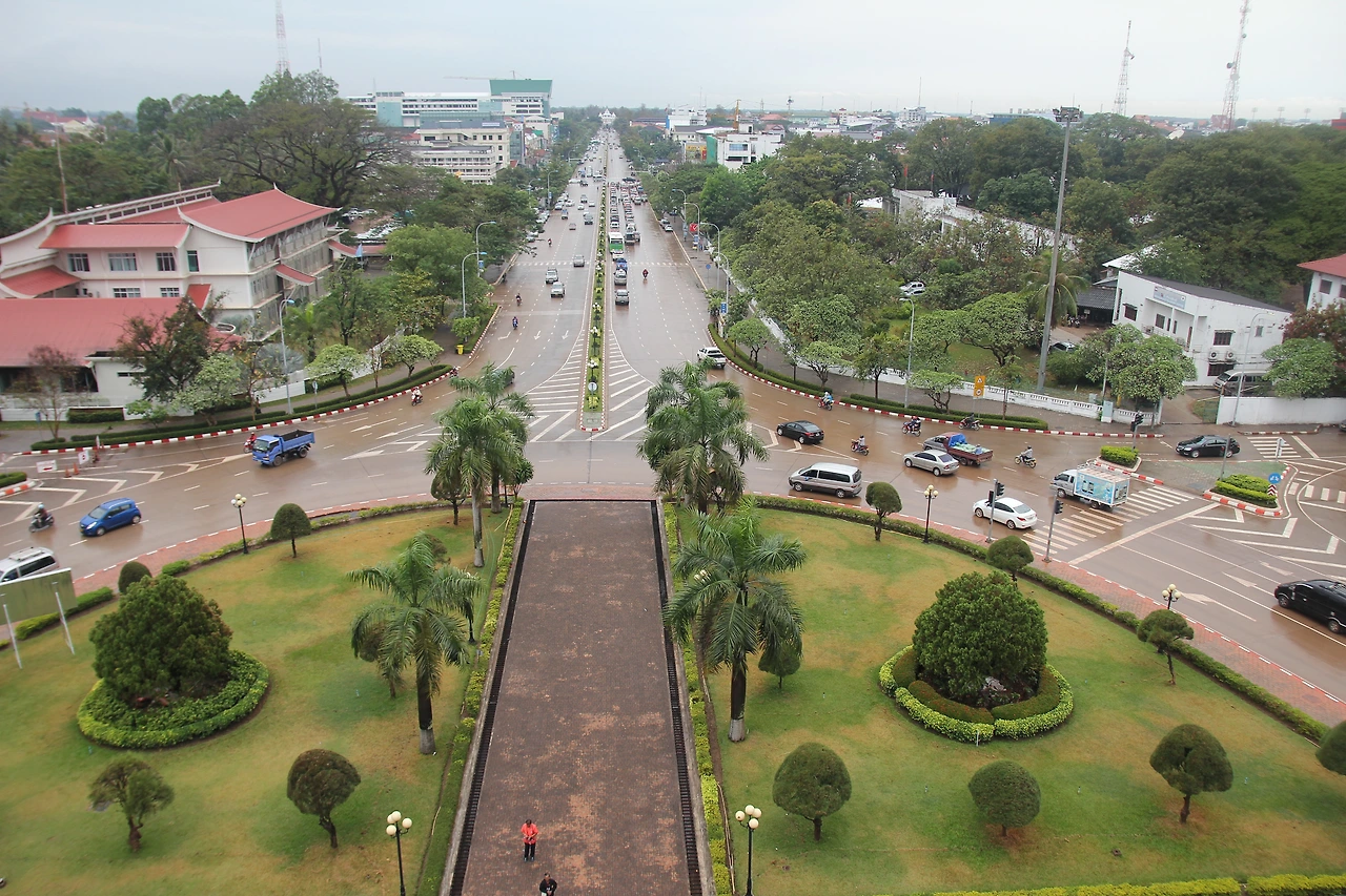 개선문 디자인에 라오스만의 색깔과 아름답고 독특하고 이국적인 건축물이 완성되었다 이 건물 위로 올라가면 시내 정경을 한눈에 관찰할 수 있다.