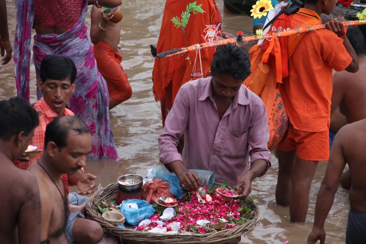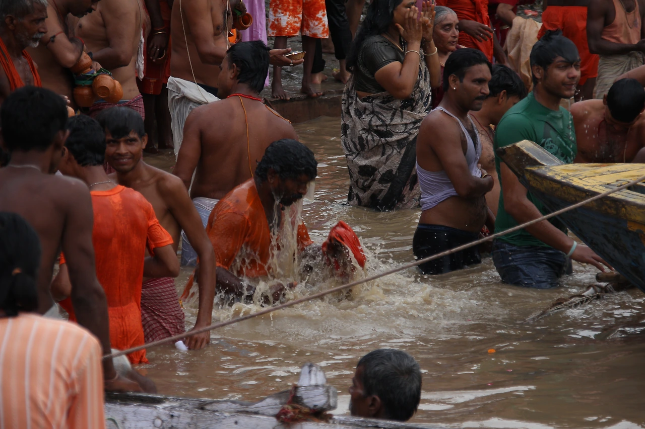 갠지스 강물엔 많은 사람들이 디아를 실어 보내고 있었다