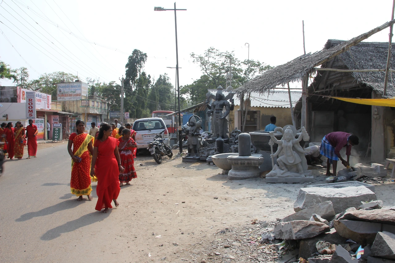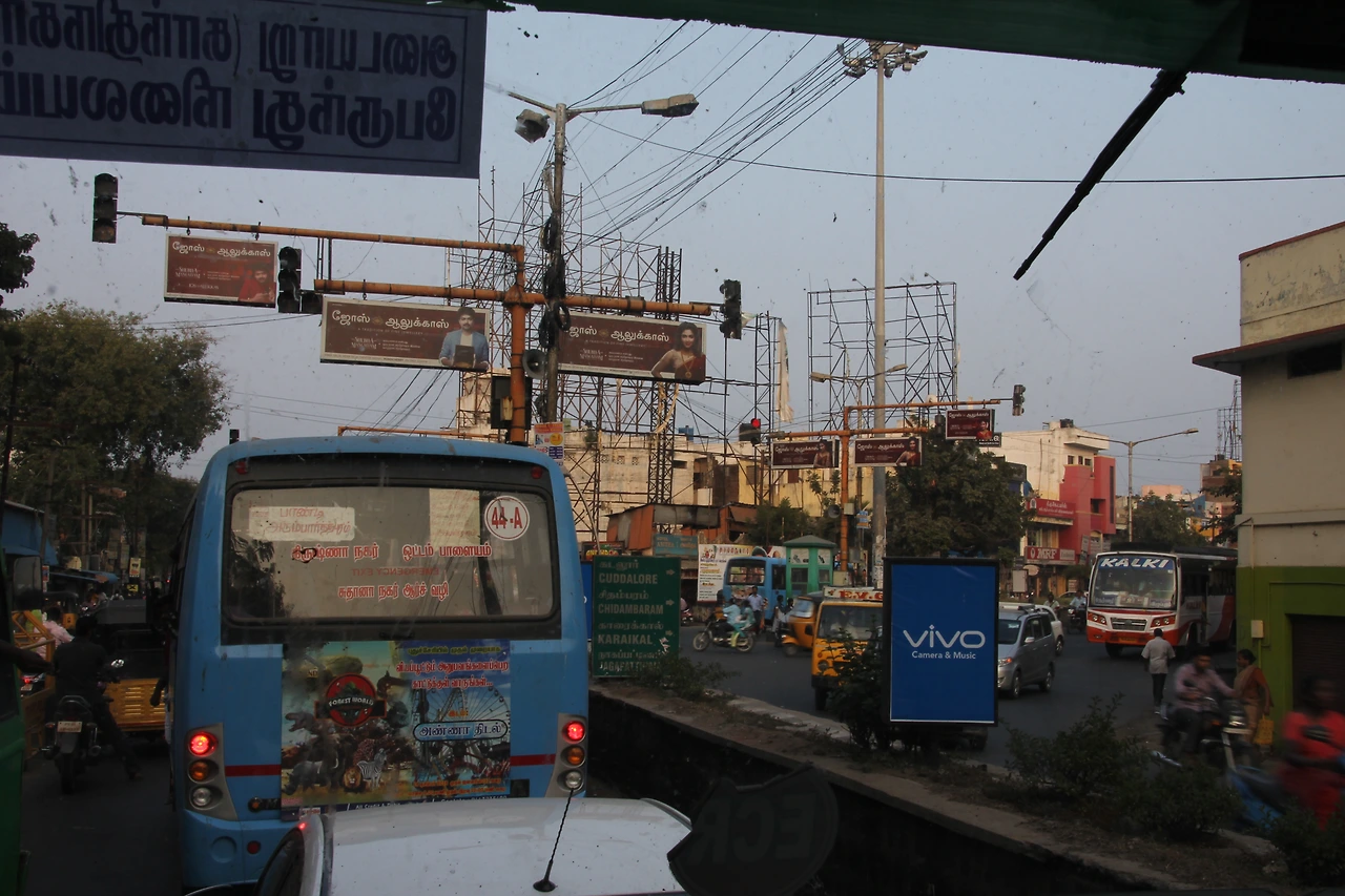첸나이는 인도에서 4번째로 큰 도시답게 한 시간 이상을 달렸는데도 아직 첸나이 시내였다. 물론 첸나이 번화한 시가지는 지났지만 작은 소읍 같은 도시의 연속이었다. 중간중간 참 많은 사람들이 타고 내렸다. 인도 현지인의 선하고 기특한 발임에 틀림없다. 로컬버스는 교통소음, 버스 안의 시끄러운 대화, 먼지 구덩이를 지나고 열린 창문으로 들어오는 맞바람과 이방인을 쳐다보는 인도인의 시선들이 합쳐져서 울퉁불퉁 덜컹거리며 우리나라에서는 한 시간이면 갈 거리를 2시간이나 걸려 마말라뿌람에 도착했다.
