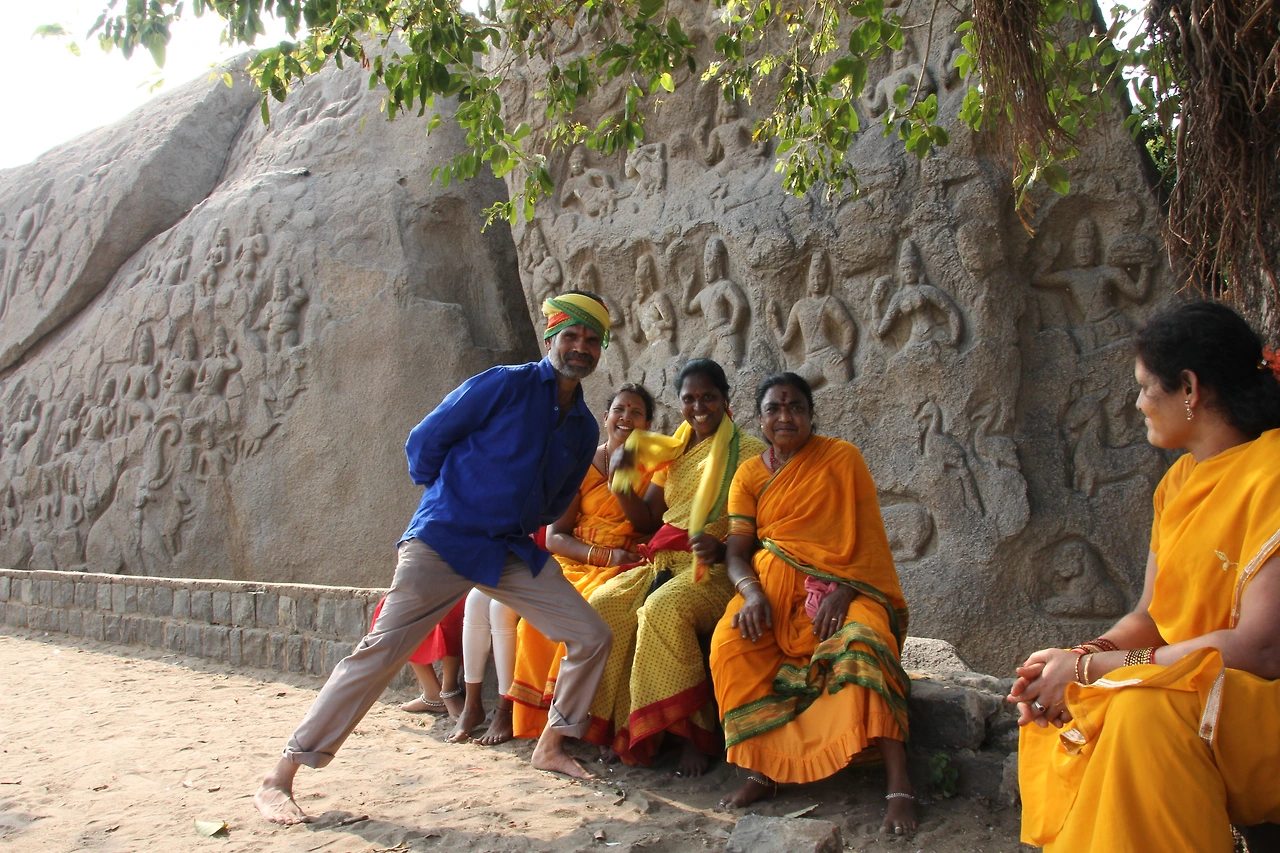 마말라뿌람의 첫인상은 여행책자에서 본 것처럼 작지만 화려했다. 걸어 다니며 둘러보아도 좋다는 여행책자의 안내는 잘못되었다. 건기이지만 무척 덥고 습한 남인도 날씨를 쏙 뺀 미진한 추천일정인 것이다. 버스에 내리자마자 어김없이 달려드는 오토 릭샤왈라, 그들과의 협상은 필수, 마말라뿌람의 유적을 전부 둘러보는데 500루피를 요구했지만 300루피(5,400원 정도)로 하기로 하고 유유자적 사진도 찍으며 둘러보았다. 마말라뿌람을 보고 나서 푸두체리로 이동하여 숙박을 해야 하는 일정이었지만 시간은 넉넉했다. 이곳 마말라뿌람은 반나절이면 충분히 둘러볼 수 있었다. 인도 특유의 돌로 지어진 사원들과 의미심장한 조각 부조들, 거리의 사람들과 카메라를 통해 소통하면서 남인도의 마말라뿌람의 화려하고 멋진 풍경과 따뜻한 현지인과 정서적 유대를 나누며 최대한 느긋하게 다녔다.