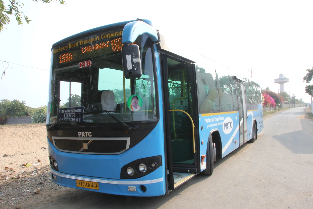 마말라뿌람에서 퐁디셰리까지는 는 60루피 파란색 직행버스를 타고 갔다. 첸나이에서 마말라뿌람 노란색 버스보다는 조금 좋았다.