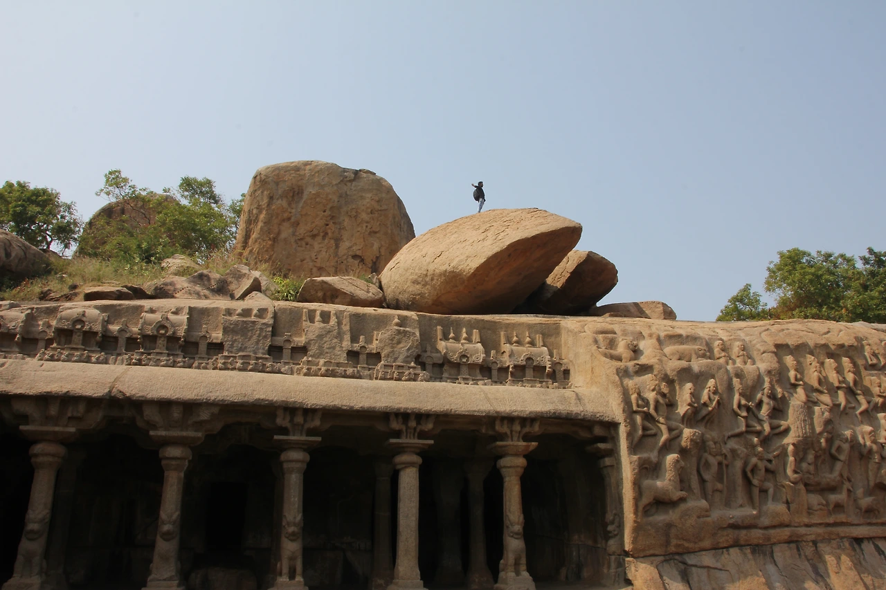 아르주나 고행상 Arjuna's Penance ; 인도 신화 속의 코끼리상, 쉬바 신 등이 큰 바위에 새겨져 있다. 뒤편 바위산 동굴 사원의 조각상도 볼 만하다. 옆 언덕에는 흔들바위 Krishna's Butter Ball이 있다.