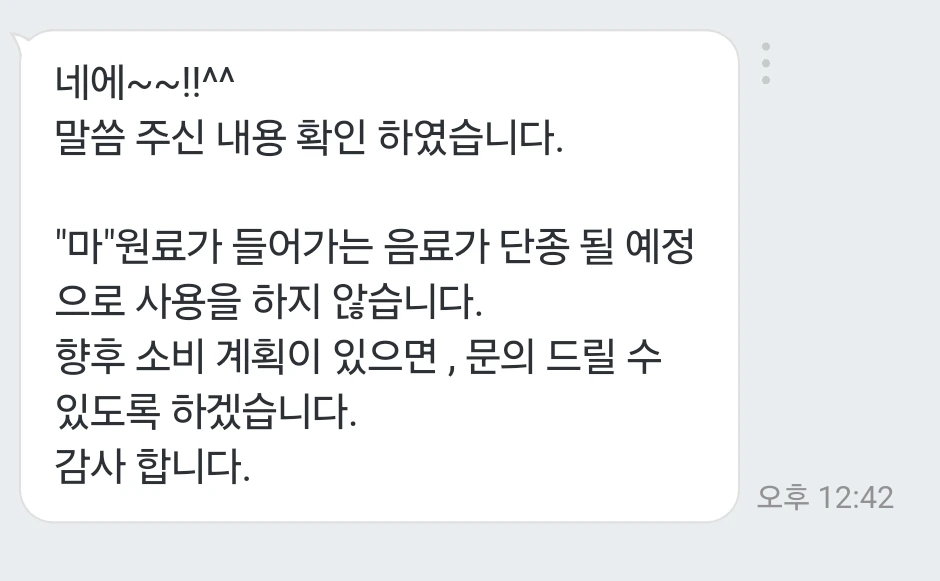 마 원료가 들어가는 음료가 단종될 예정이라니
